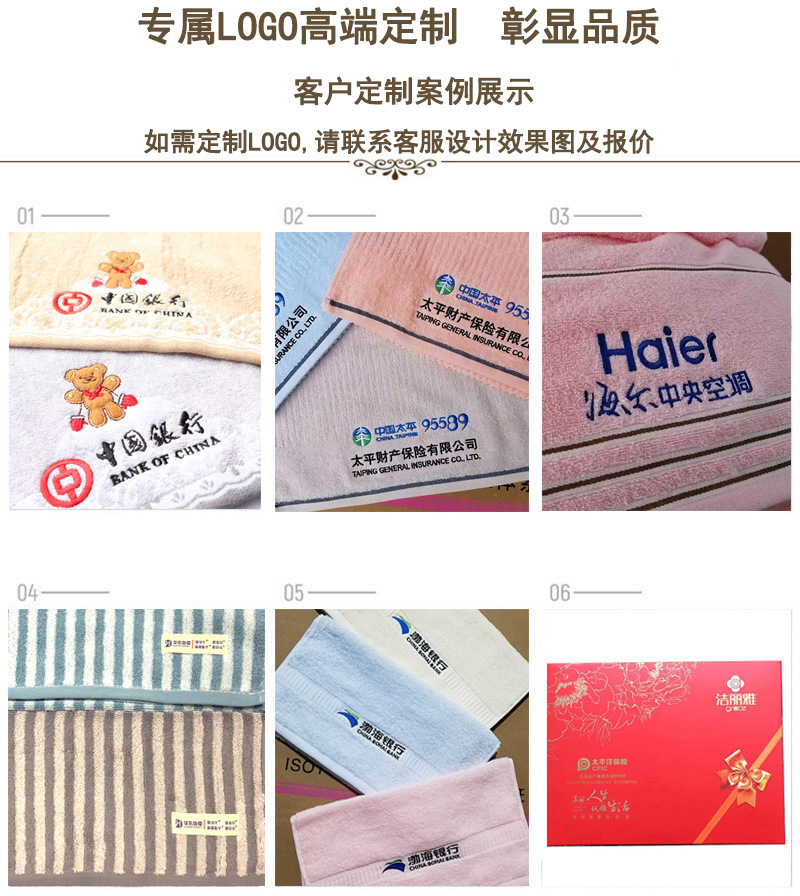 Полотенце Jieliya из чистого хлопка мягкое Впитывающее простое Хлопковое полотенце с вышитым логотипом Jieliya 6717