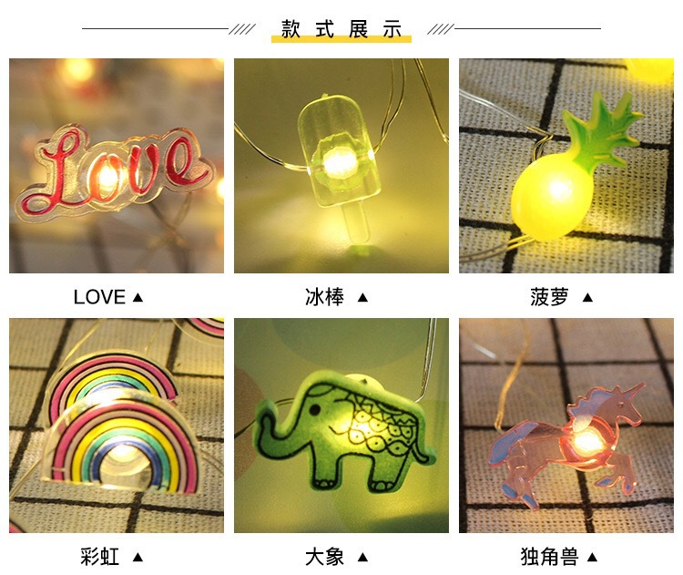 Qianguang ins медная проволока лампа ананас кактус пицца Радуга Единорог виноград Фламинго застежка огни