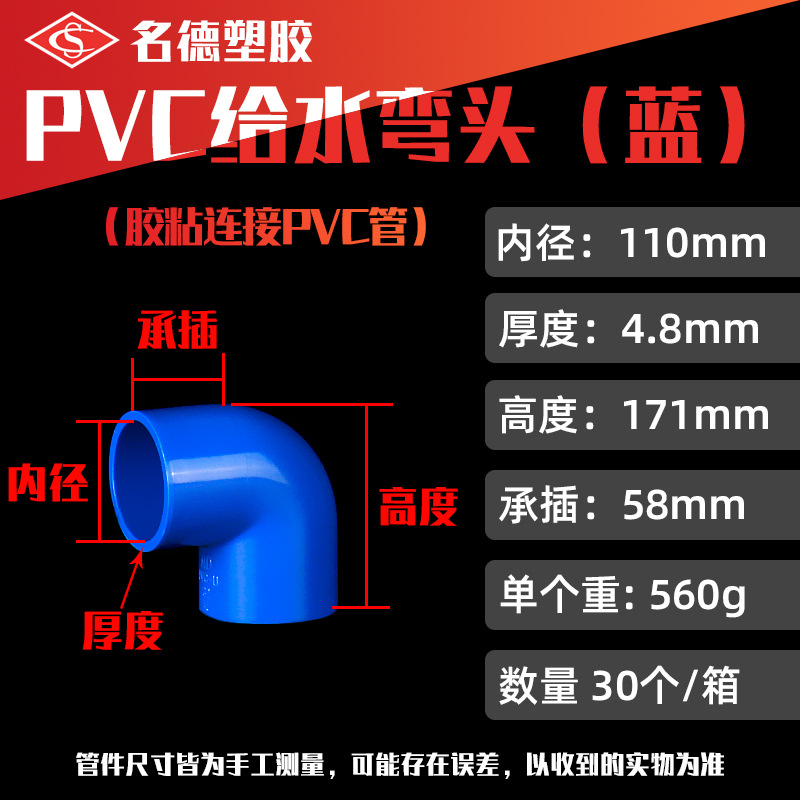 Угловой фитинг из ПВХ для водоснабжения, 90 градусов, утолщенный, белый, серый, синий, пластиковые трубные соединители, аксессуары 225-3