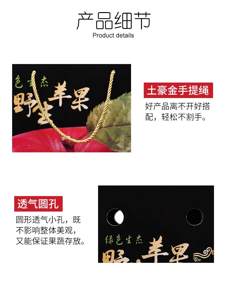 10斤装野生苹果手提礼盒彩盒包装纸箱 水果礼品盒 厂家批发可定制