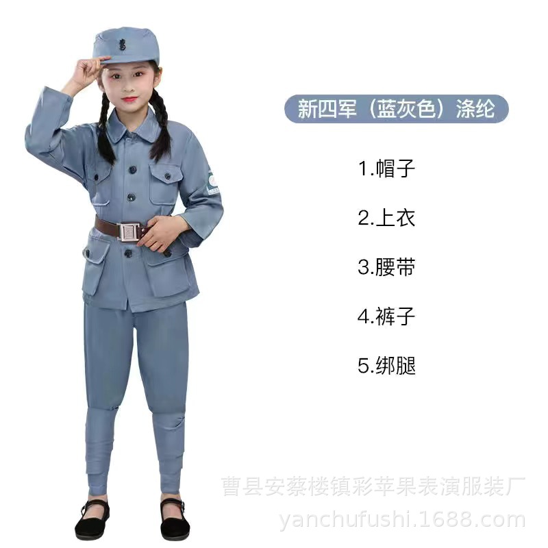 Маленькая красная армейская одежда Детский костюм Восьмой маршрут Армейские красногвардейцы Мужчины и женщины Новый 4-й армии Красная звезда Сияющий костюм Костюм для выступлений