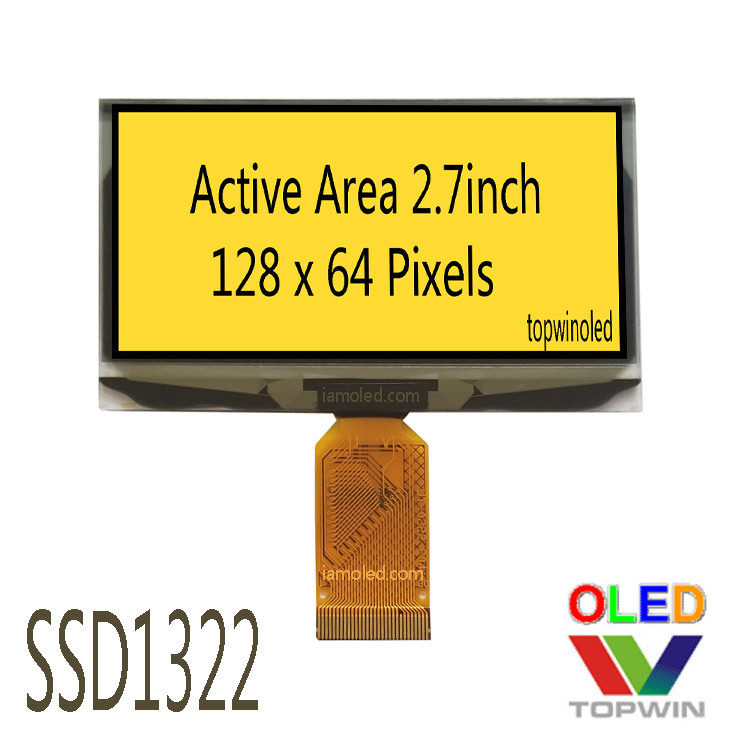 2.7寸UG-2864ASYIG01-黄光,2.7寸oled,2.7寸黄光,128x64,126*64,ssd1322,16级灰阶