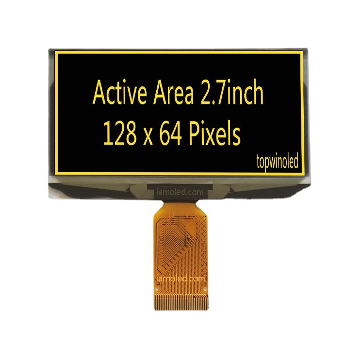 2.7寸UG-2864ASYDT03-无铁框,2.7寸oled,2.7寸黄光,128x64,126*64,ssd1325,16级灰阶,长排线