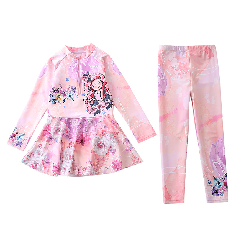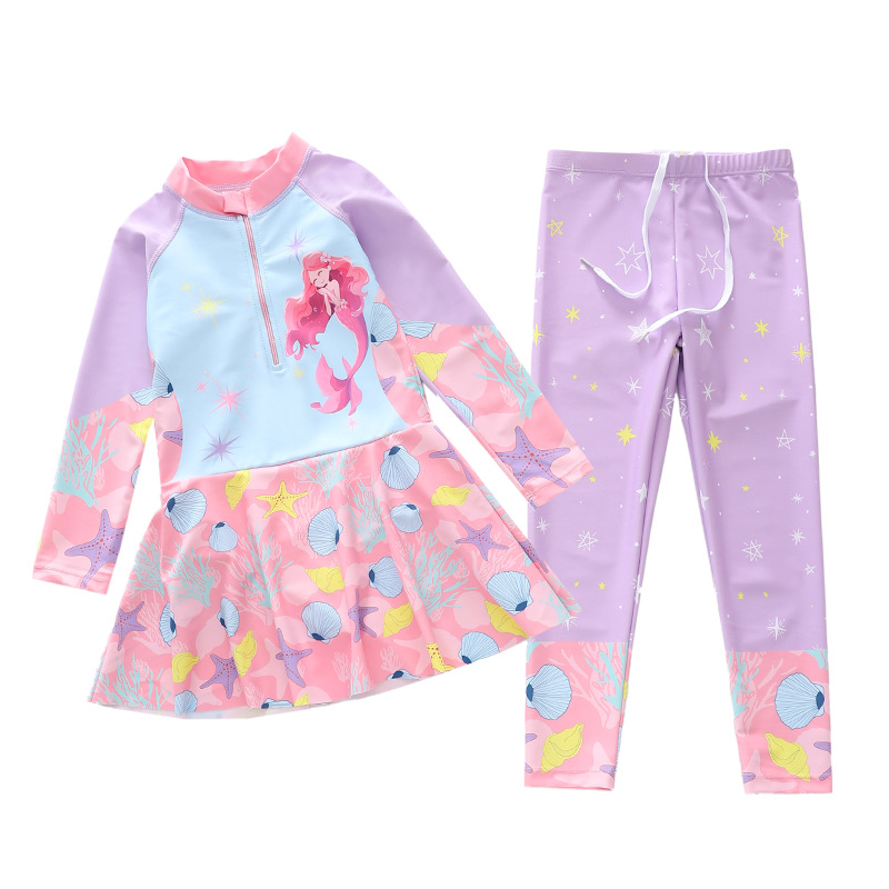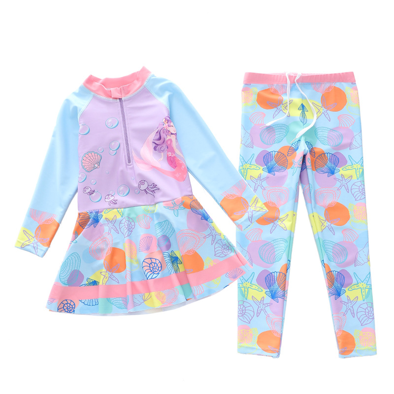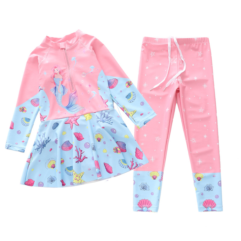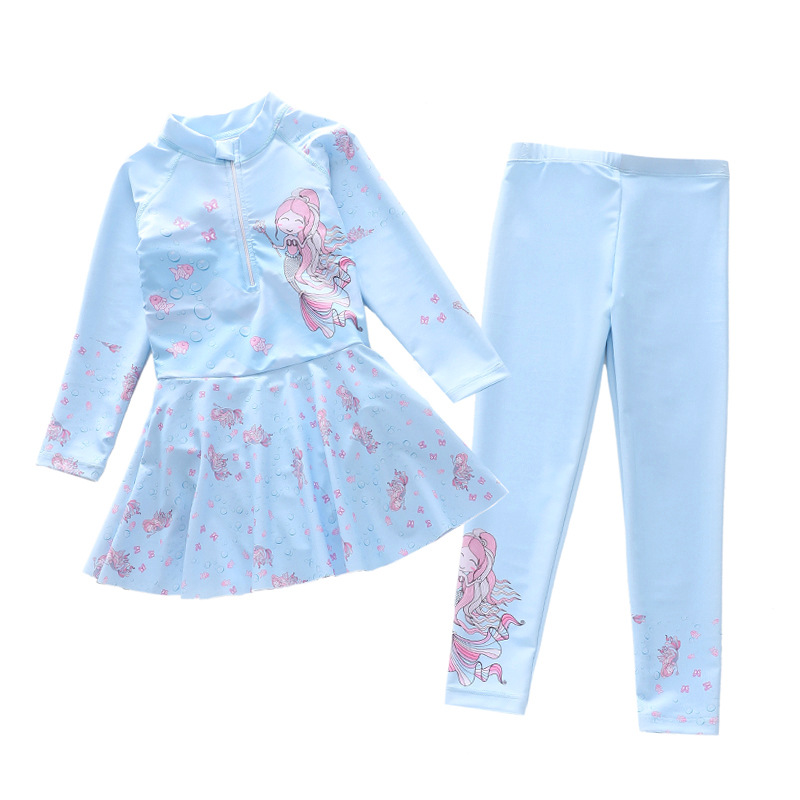 Новый детский купальник женский большой детский цельный купальник плюс плавки купальник солнцезащитный крем с длинными рукавами консервативный купальник для девочек