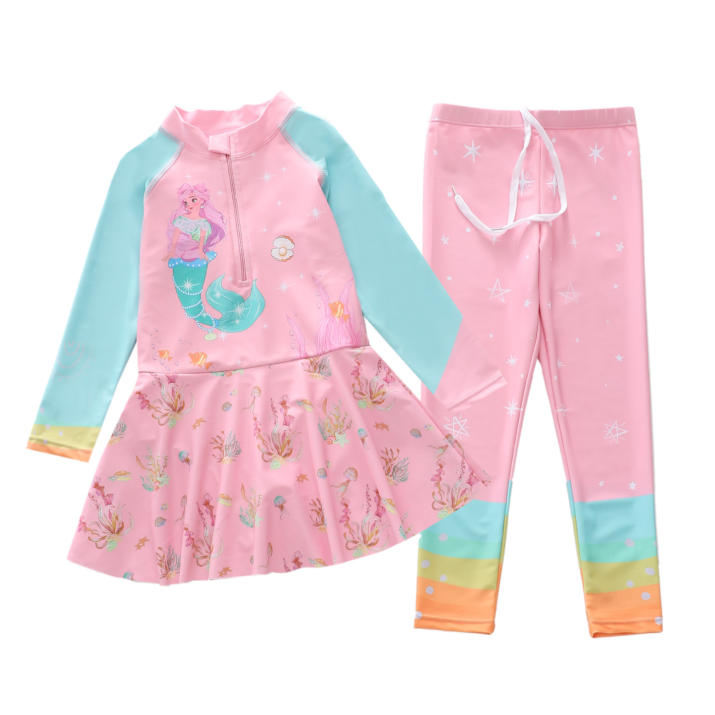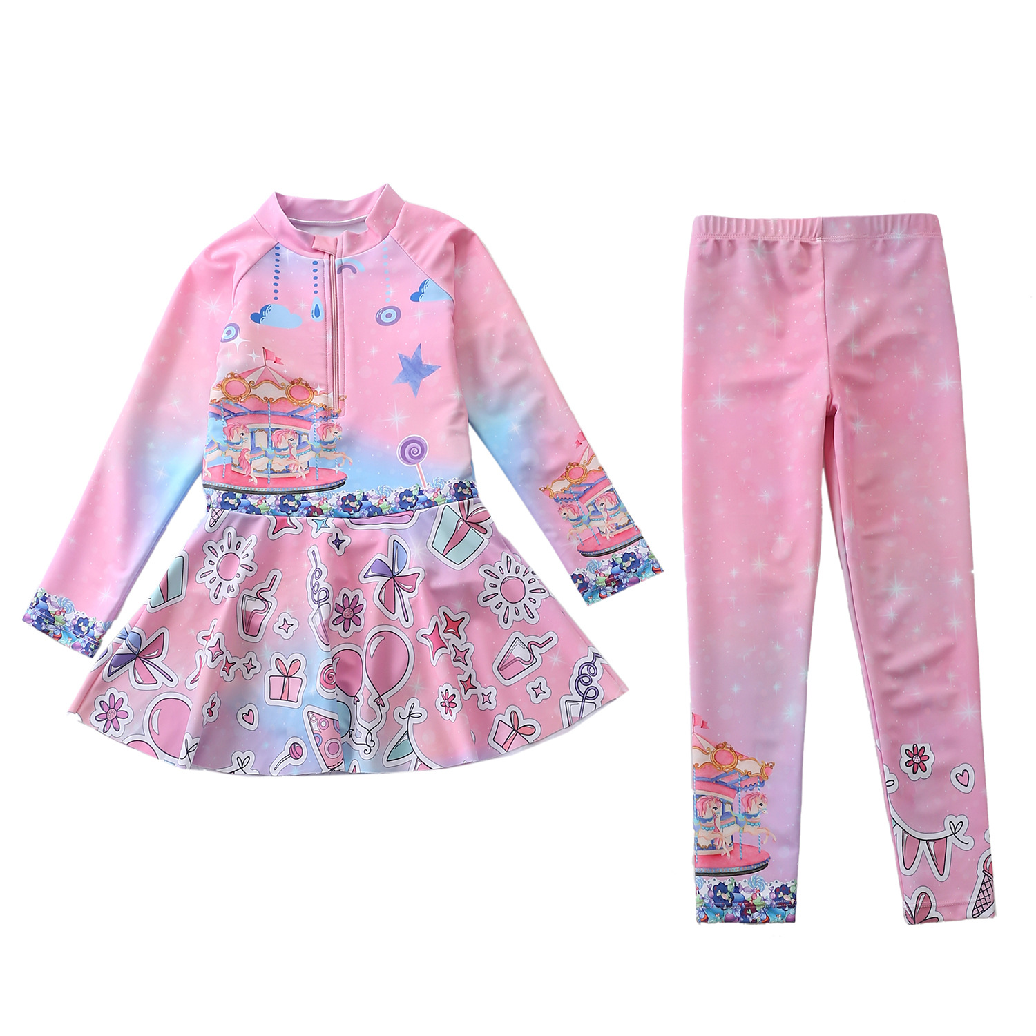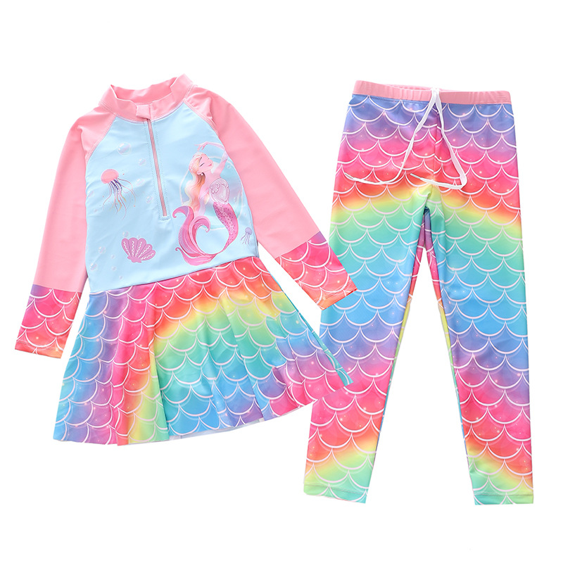 Новый детский купальник женский большой детский цельный купальник плюс плавки купальник солнцезащитный крем с длинными рукавами консервативный купальник для девочек