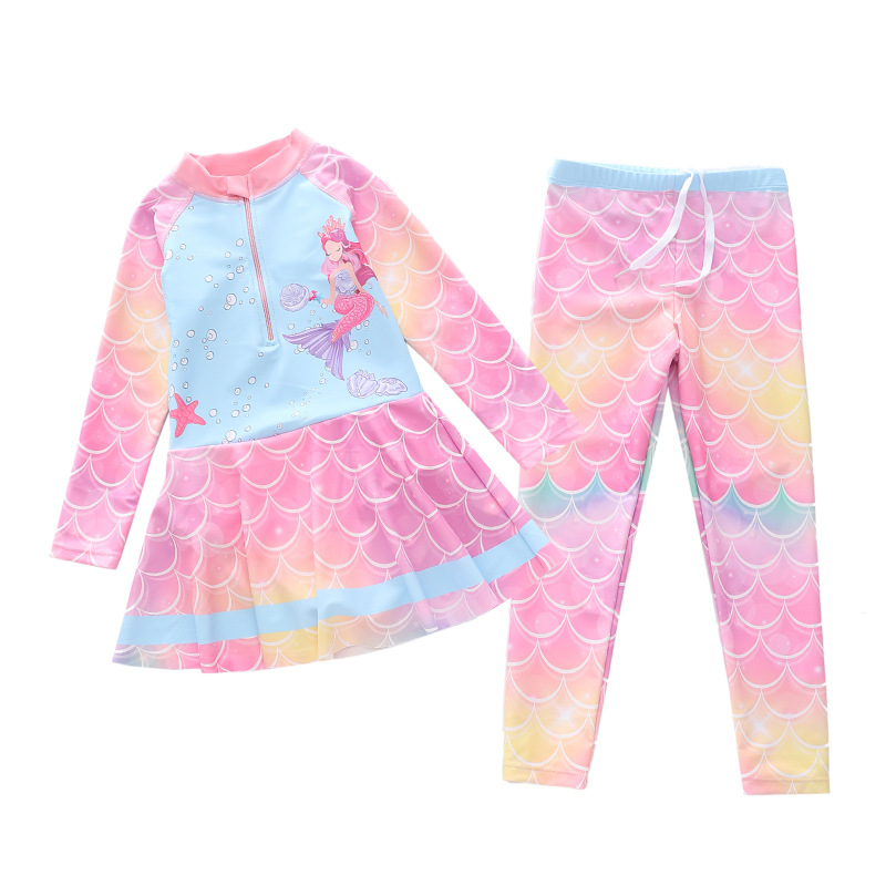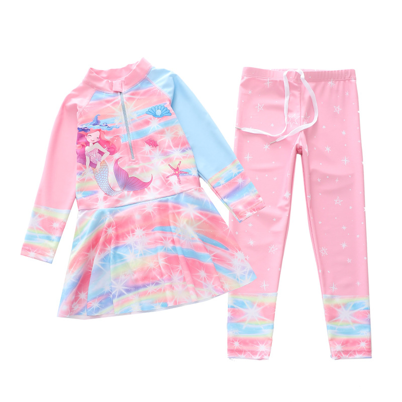 本款泳衣特色是:带泳裤的连体泳衣+长裤