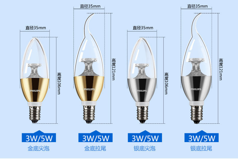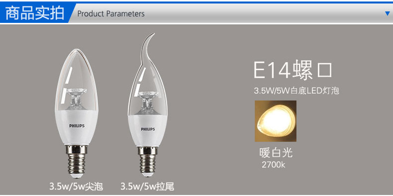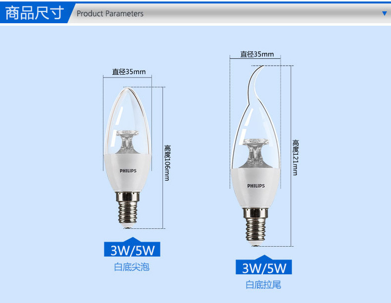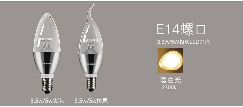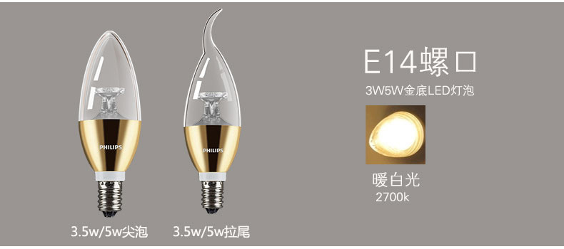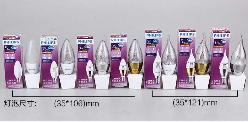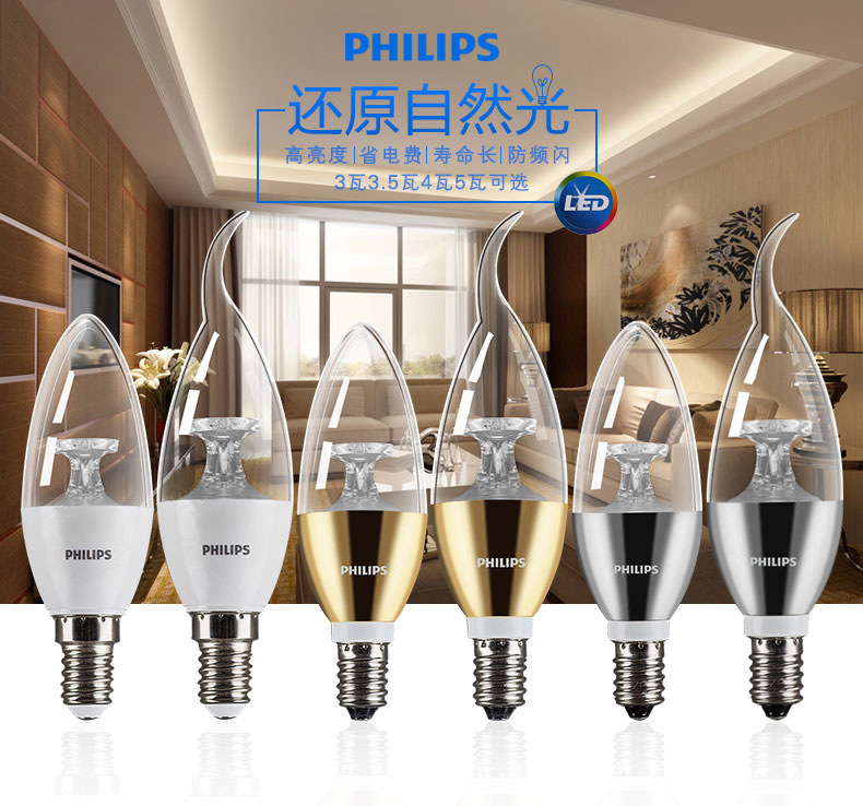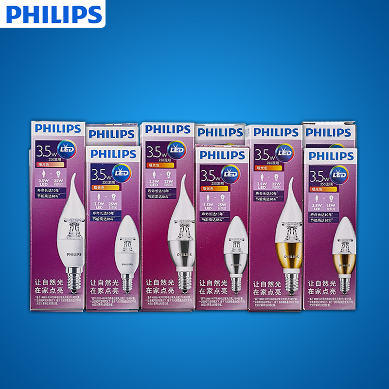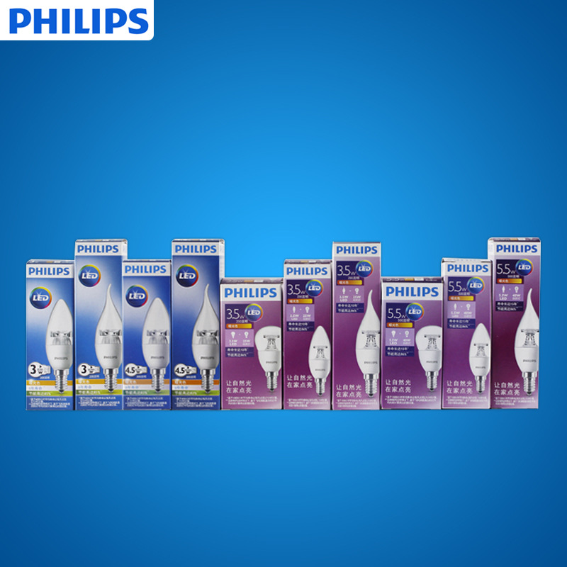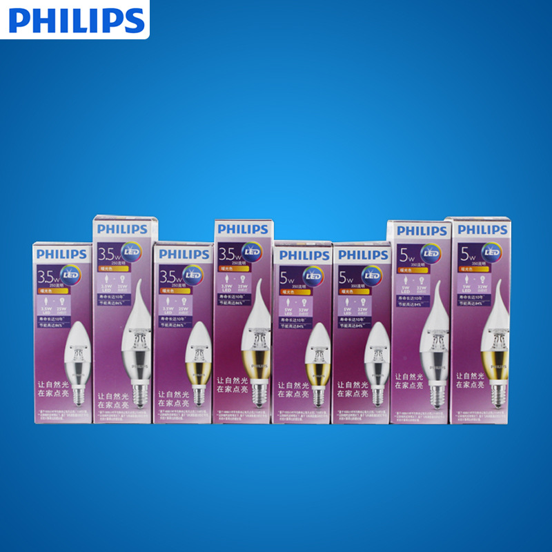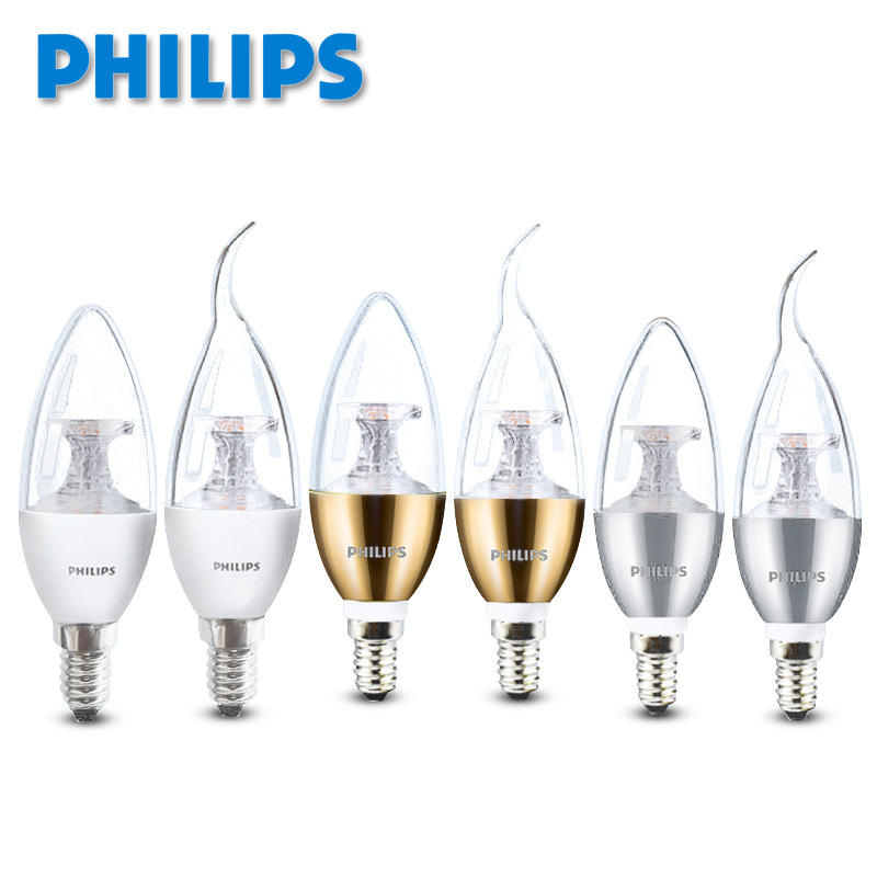 Светодиодная лампа Philips E14, цоколь-штекер, светодиодная лампа-свеча с выступом, 3.5W/5.5W, кристаллический источник света, долгий срок службы