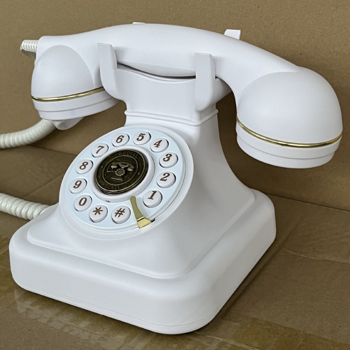 出口欧美韩的仿古电话,气质典雅,做工考究,唯美,金属配件为镀金铜色制,进口芯片,通话质量清晰无杂音。追求经典复古感产品通过国家强制性安全3C认证及FCC与CE认证,质量可靠,特适合于家居饰品、商务礼品馈赠!有保修卡保修期为一年,(保修卡里包含了保修内容)操作简单,已通过入网许可,插线即使用.硅胶按键,音频/脉冲选择。包装为礼盒装,送人自用都合适。