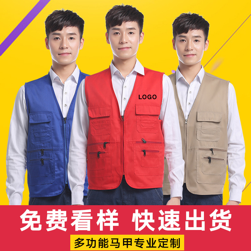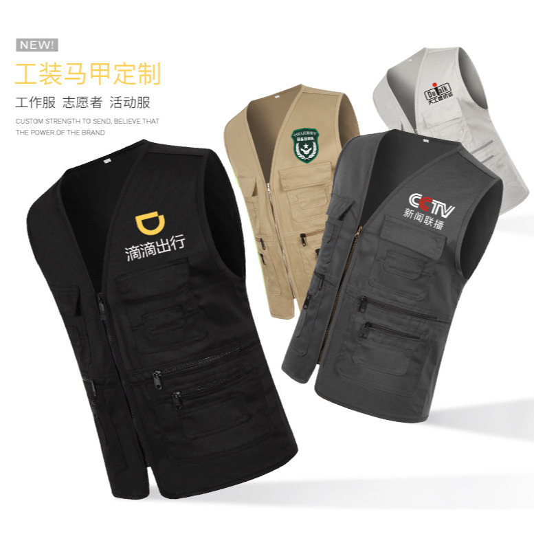 Волонтерская рабочая одежда жилет пользовательские мульти-карманные фотографии жилетка рекламная футболка на заказ жилет с логотипом