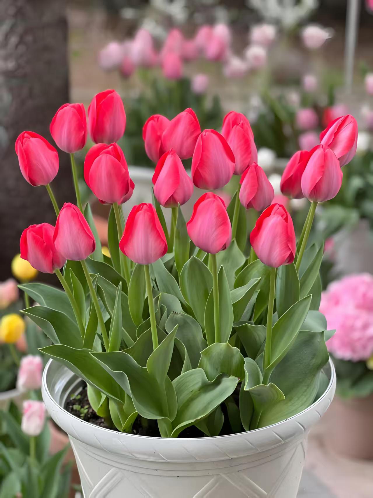 “种植郁金香最好在每年的秋季进行,时间为10月份下旬-12月之间。一般使用它的球茎种植,土壤选择肥沃透气性好的类型。将种球直立放在花盆正中位置,做好后期的养护管理工作,一般20天左右就会生根发芽。”
