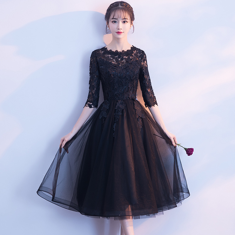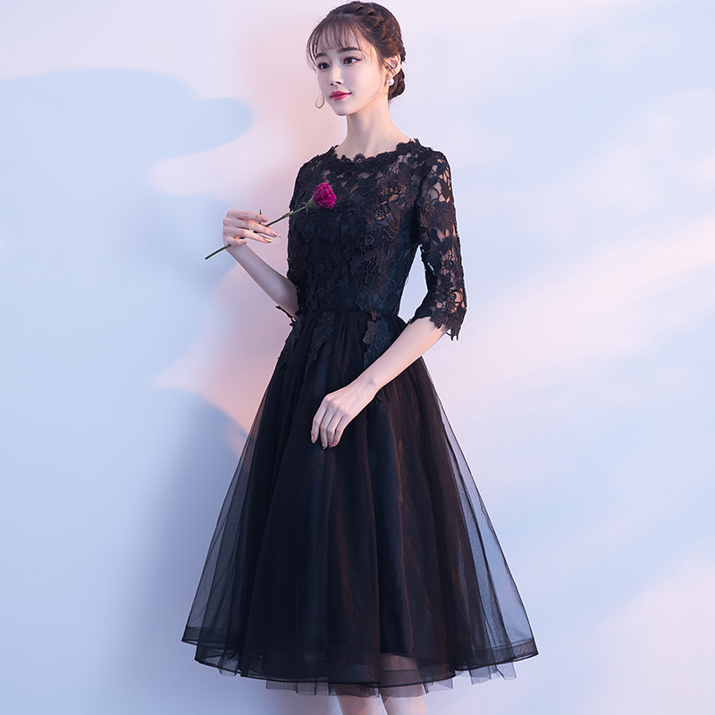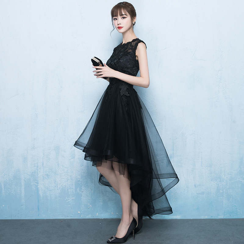 Вечернее платье для банкета 2026, новая модель, короткое спереди и длинное сзади, элегантное платье для вечеринок, черное вечернее платье, цельное, оптом