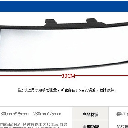 【产品尺寸】:长300mm X 宽70mm (一般曲面镜只有65mm,本品为大视野曲面镜)