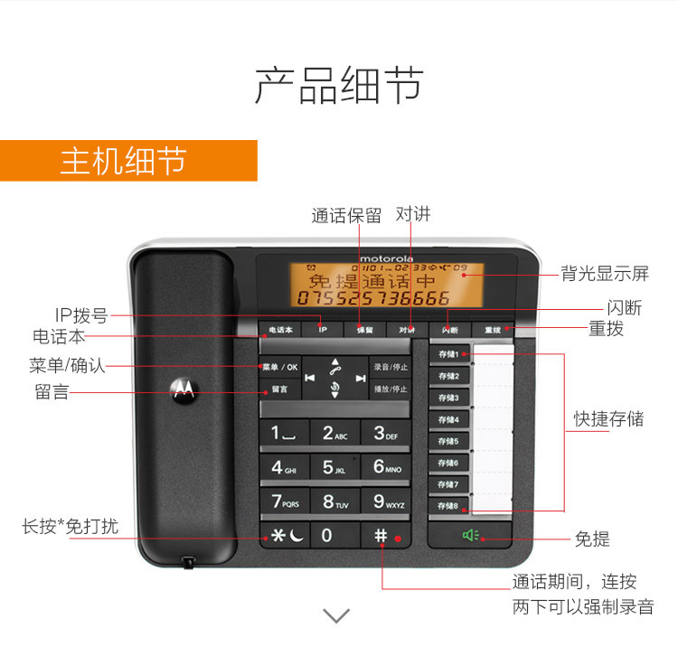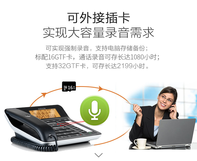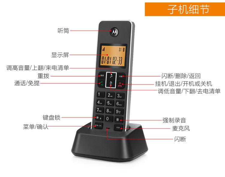 Беспроводная телефонная трубка Motorola C7501RC с автоматической записью разговоров и определителем номера для дома и офиса