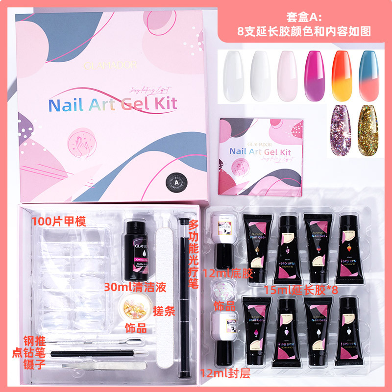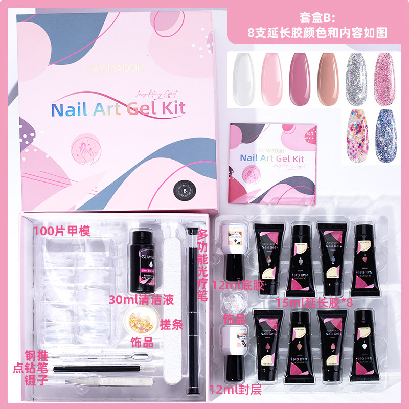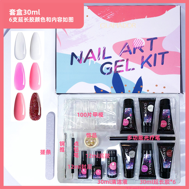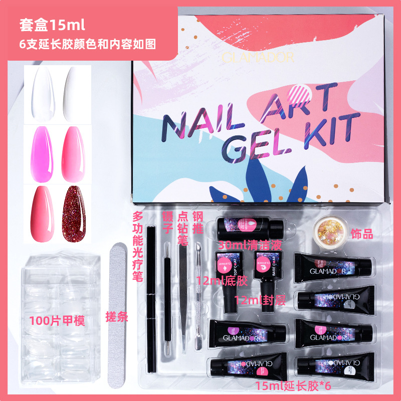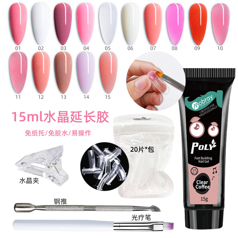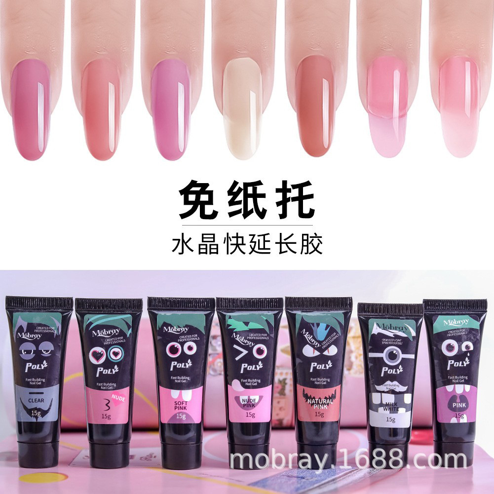 Оптовая Продажа с фабрики дизайн ногтей Кристалл расширение клей Поли гель наращивание ногтей 15 мл фототерапия Бесплатный держатель для бумаги костюм 30 мл