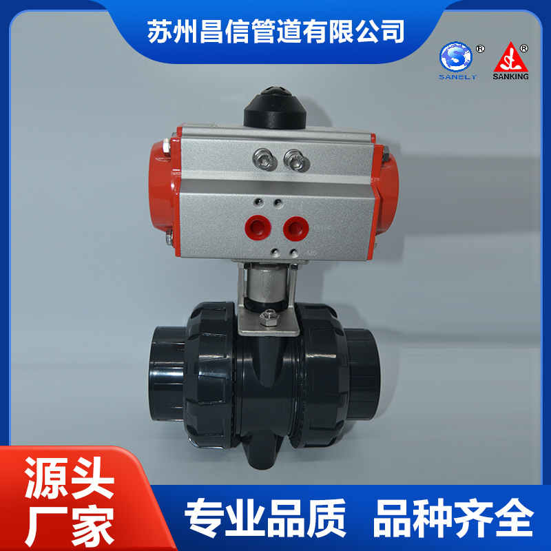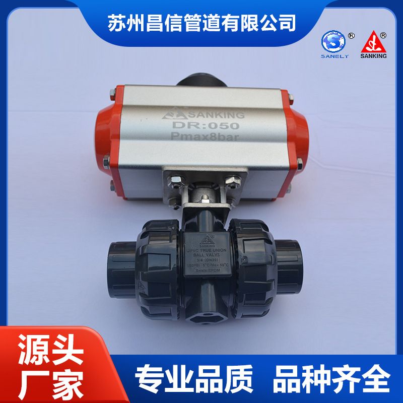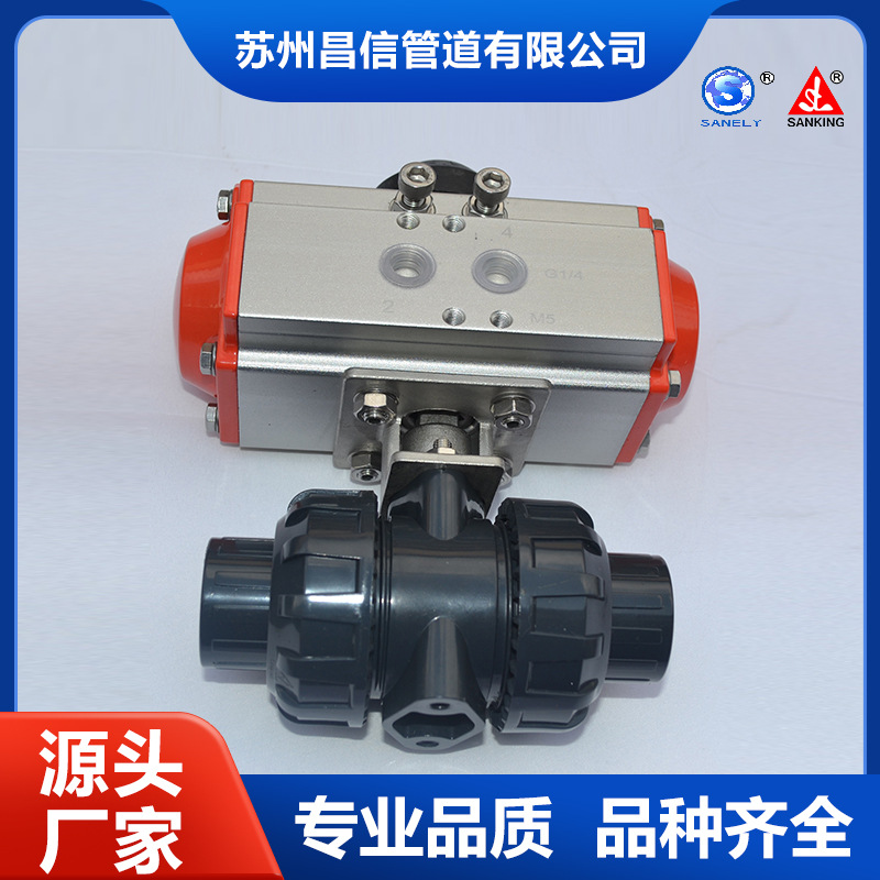 Оптовый трехпроцентный бренд SANKING UPVC/EPDM DN25 Пневматический Двойной на заказ шаровой кран ПВХ Пневматический шаровой кран