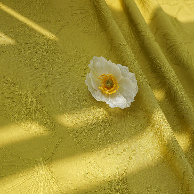 Вискоза ткань 30 юбка ханьфу хлопок шелковая ткань винтажная имбирь желтый лист гинкго Темный узор жаккардовая ткань