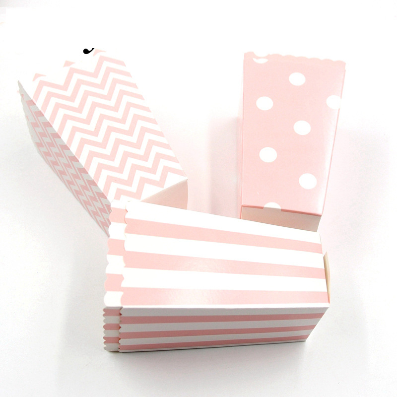 В наличии оптом розовый попкорн коробка горошек полоса волна упаковочная коробка 12/шт пищевой упаковки коробки