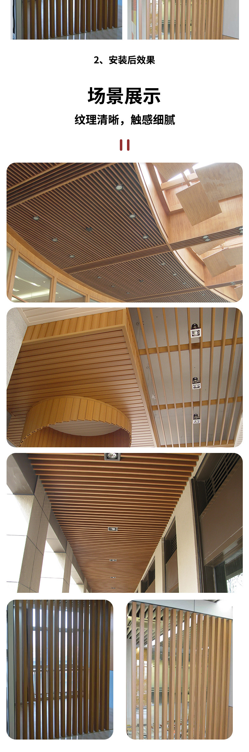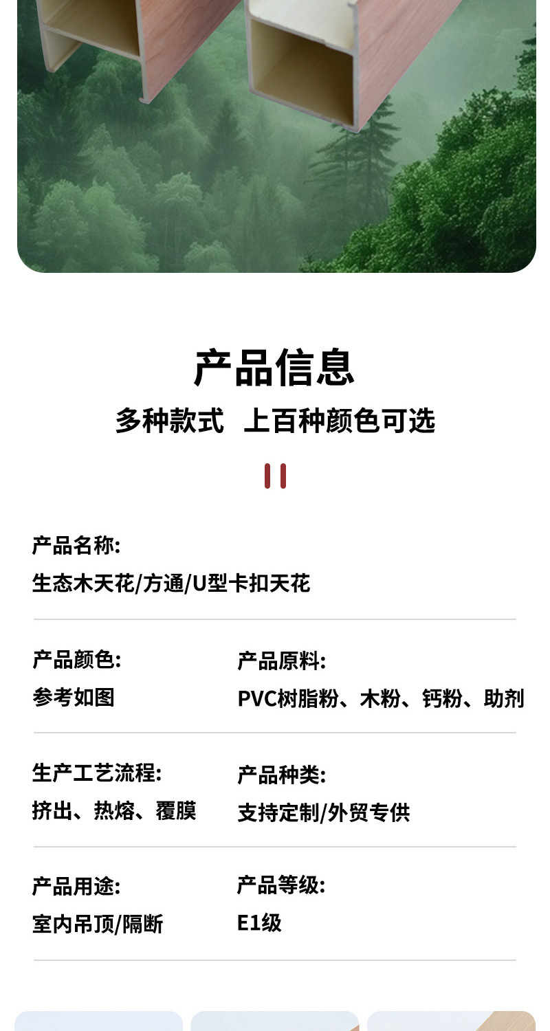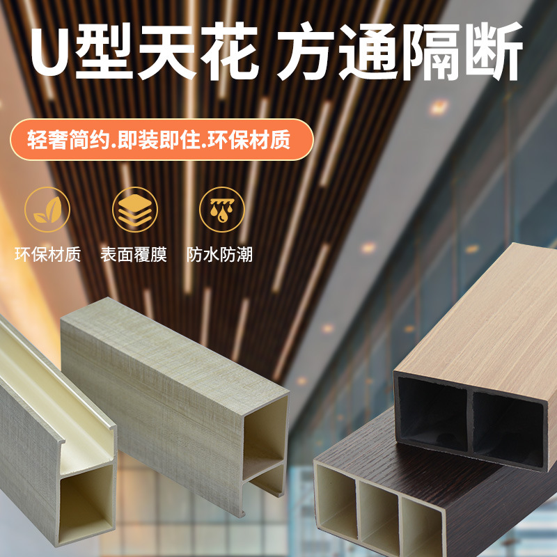 Потолок ПВХ зеленое дерево Сетка красная сетка экологический деревянный потолок U-образный потолок с зажимом деревянный потолок с пластиковым покрытием