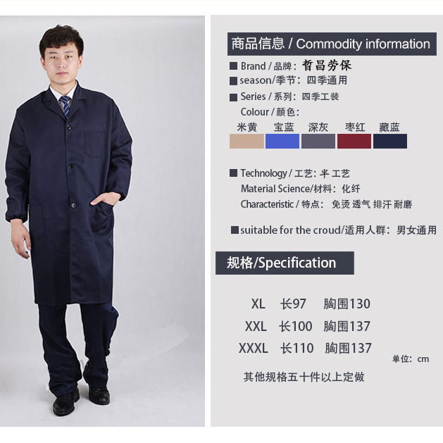 Мужское и женское длинное синее пальто, комбинезон с длинными рукавами, Пыленепроницаемая защитная одежда, инструменты, оптовая фабрика, комбинезон