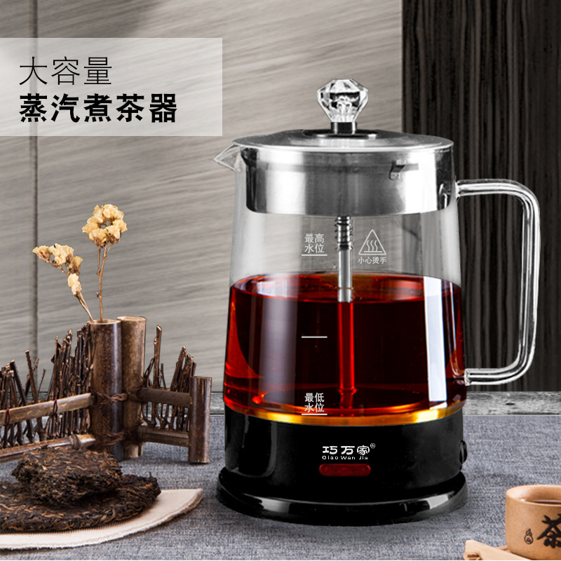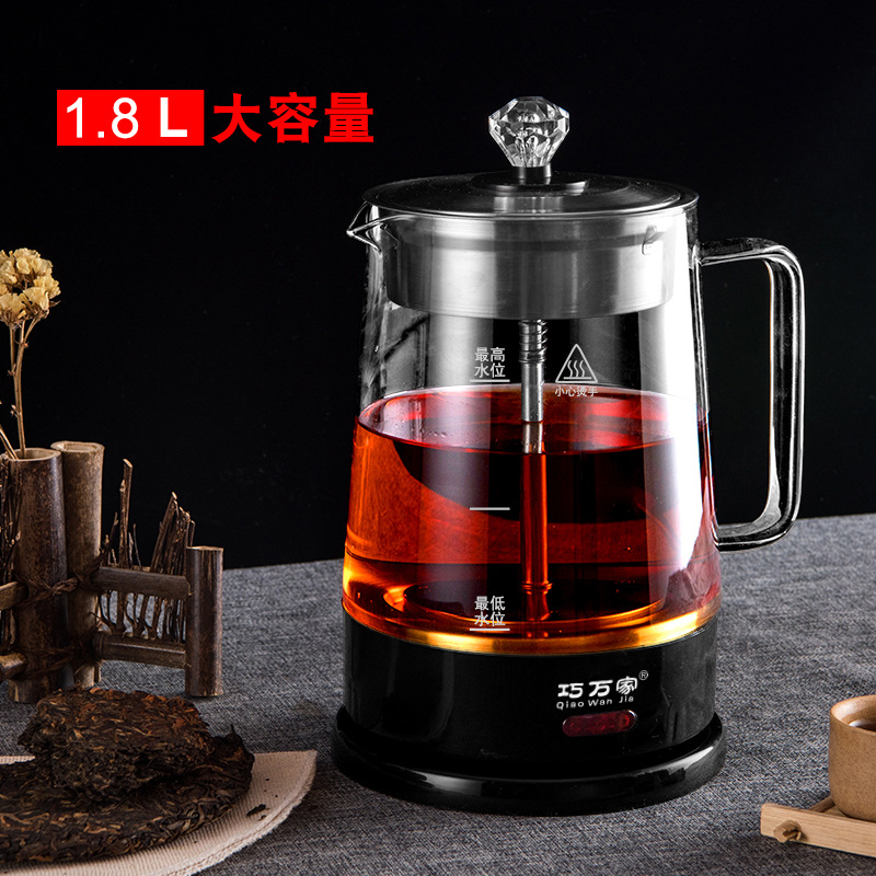 Паровой чайник большой емкости 1,8 л Бытовой черный чай Горшок для здоровья Автоматическое стеклянное нагревание воды и электричества Чайник для кипячения