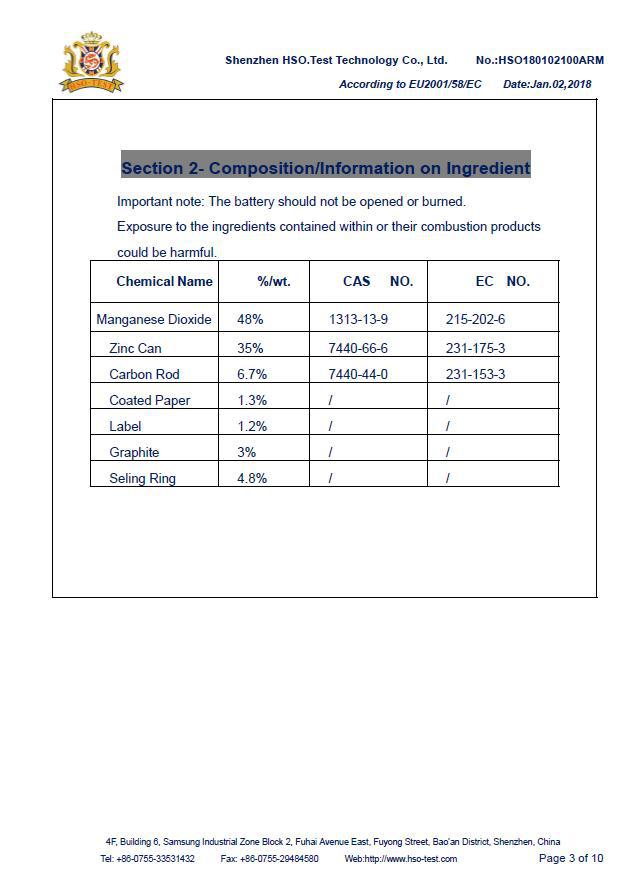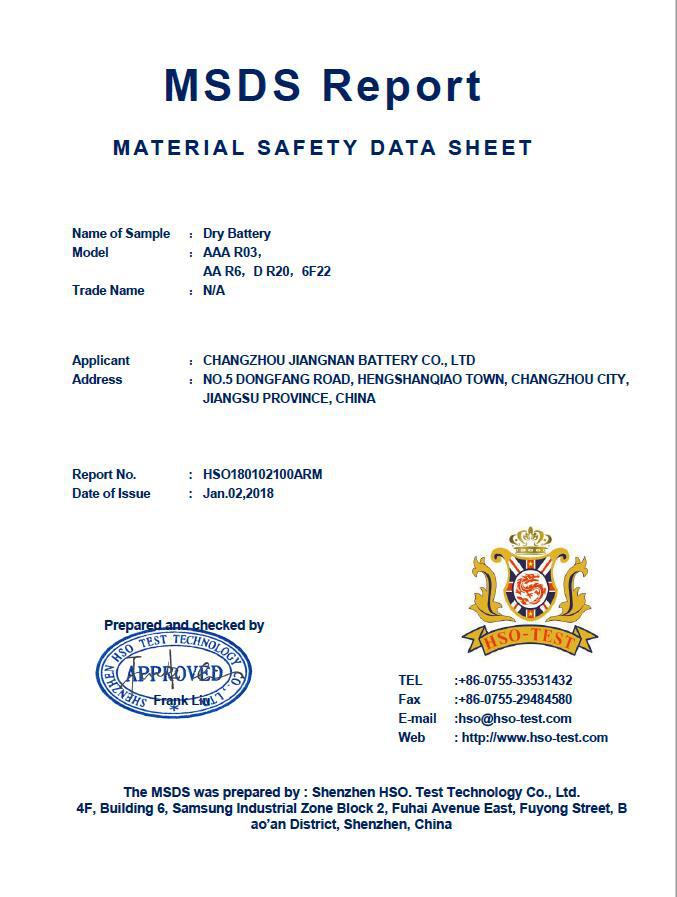 产品类型:碳性P型电池/有证书和MSDS