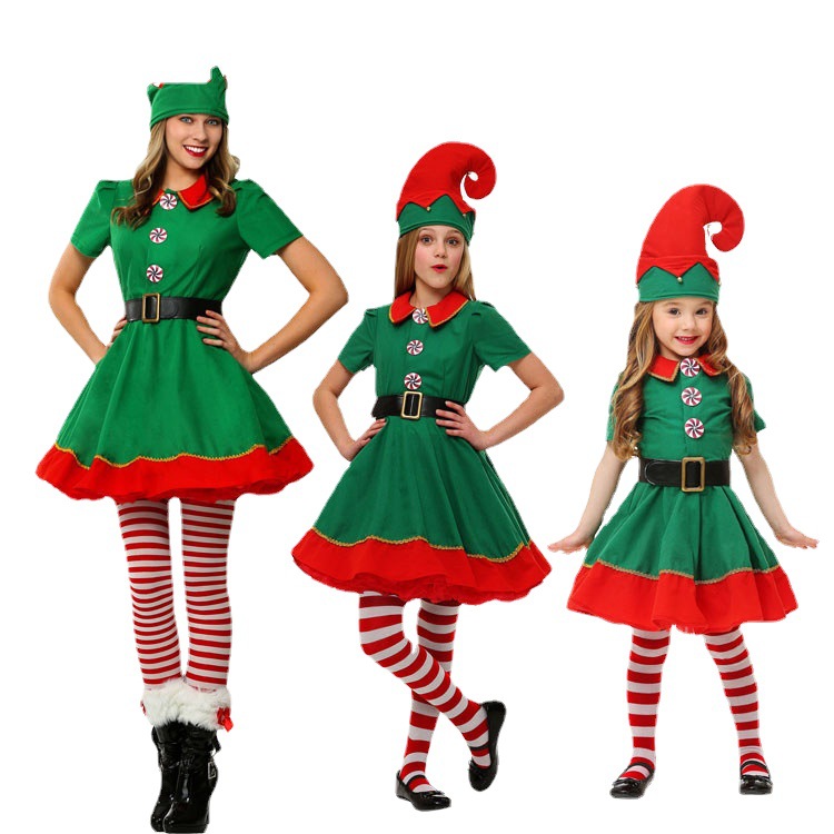 Детские рождественские костюмы для мальчиков и девочек Рождественские эльфы одеваются костюмы для малышей Рождественская одежда для родителей и детей
