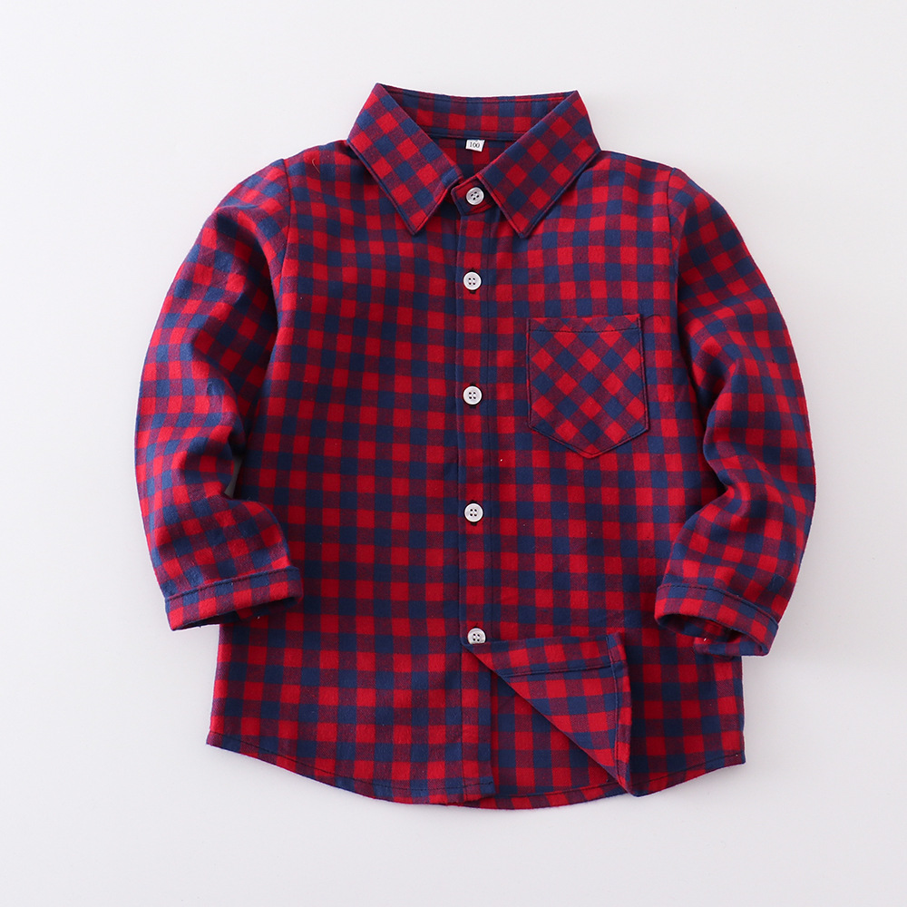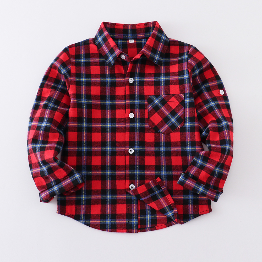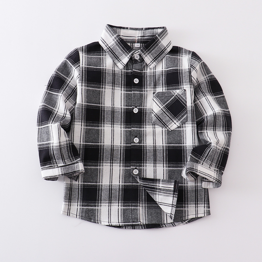 2025 весна и осень новая детская рубашка с длинными рукавами для мальчиков и девочек рубашка в клетку с отворотом однобортная рубашка