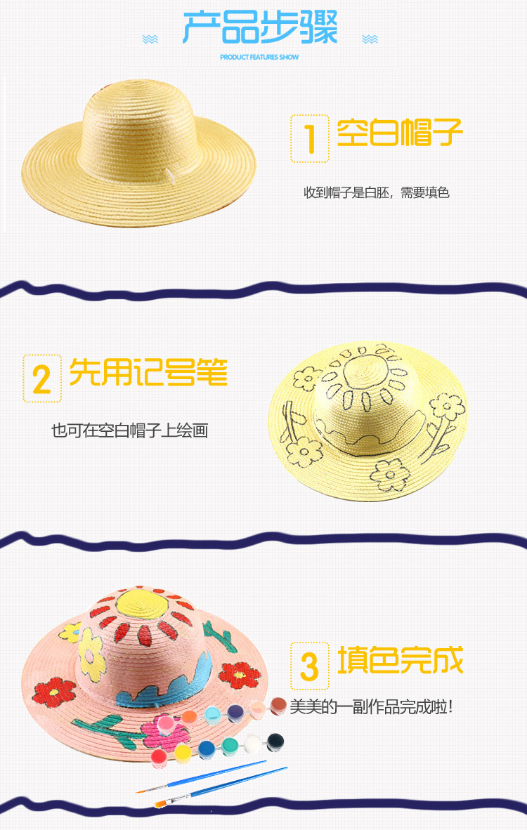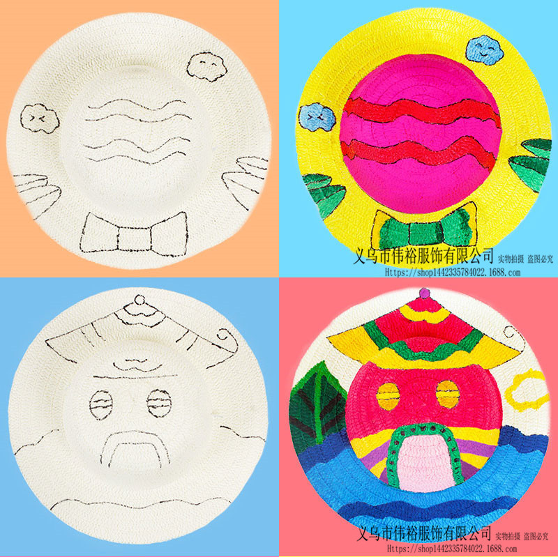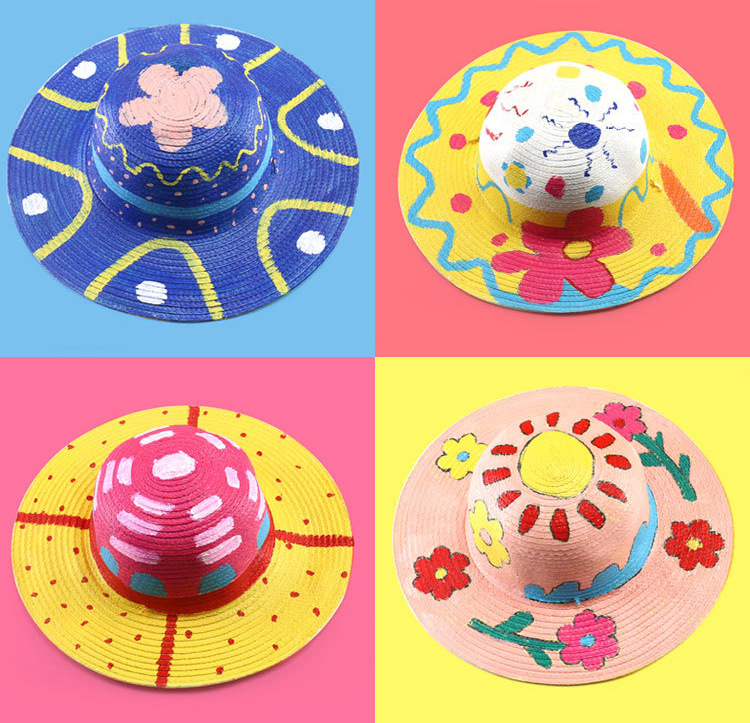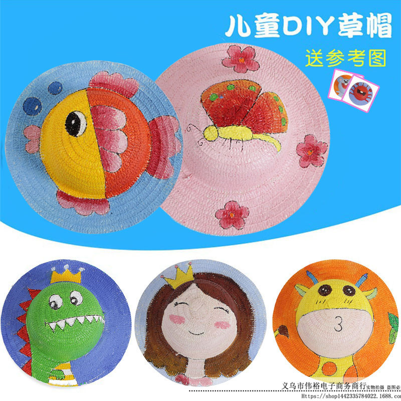 Детская ручная роспись DIY соломенная шляпа детский сад материалы ручной работы рекламная шляпа сад для создания подарочного киоска поставки