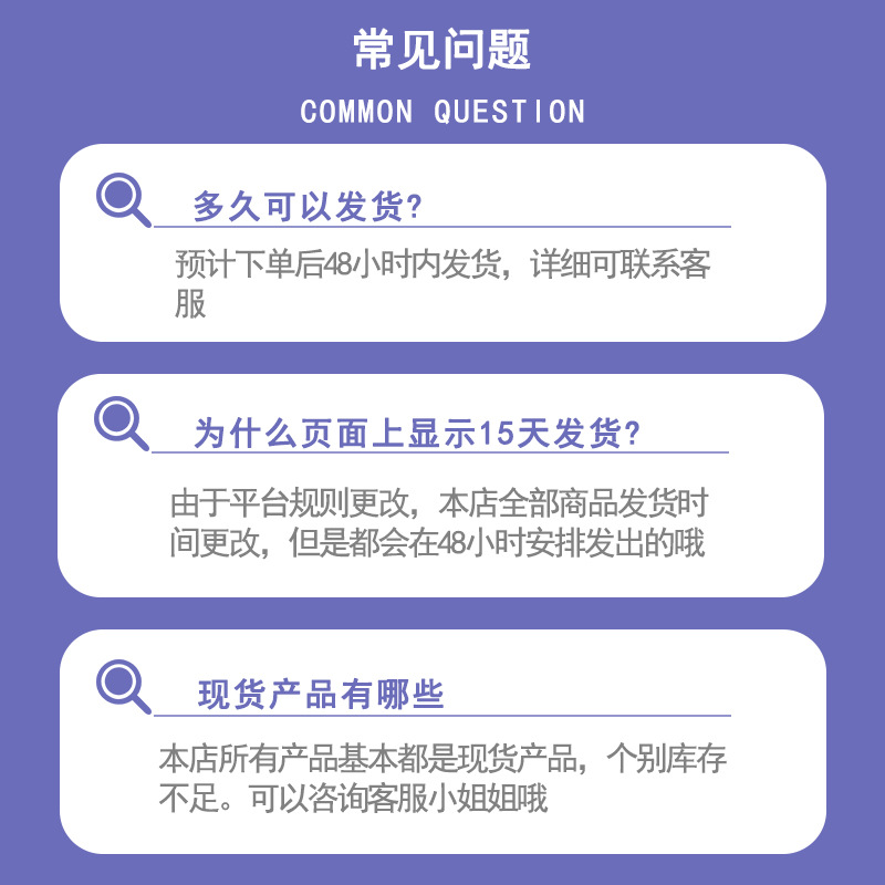 因为款式众多,每天的走货量很大,有个别断货缺色的我们则随机发货,不接受请勿下单!如果有缺货的会写缺货清单,不一一通知!