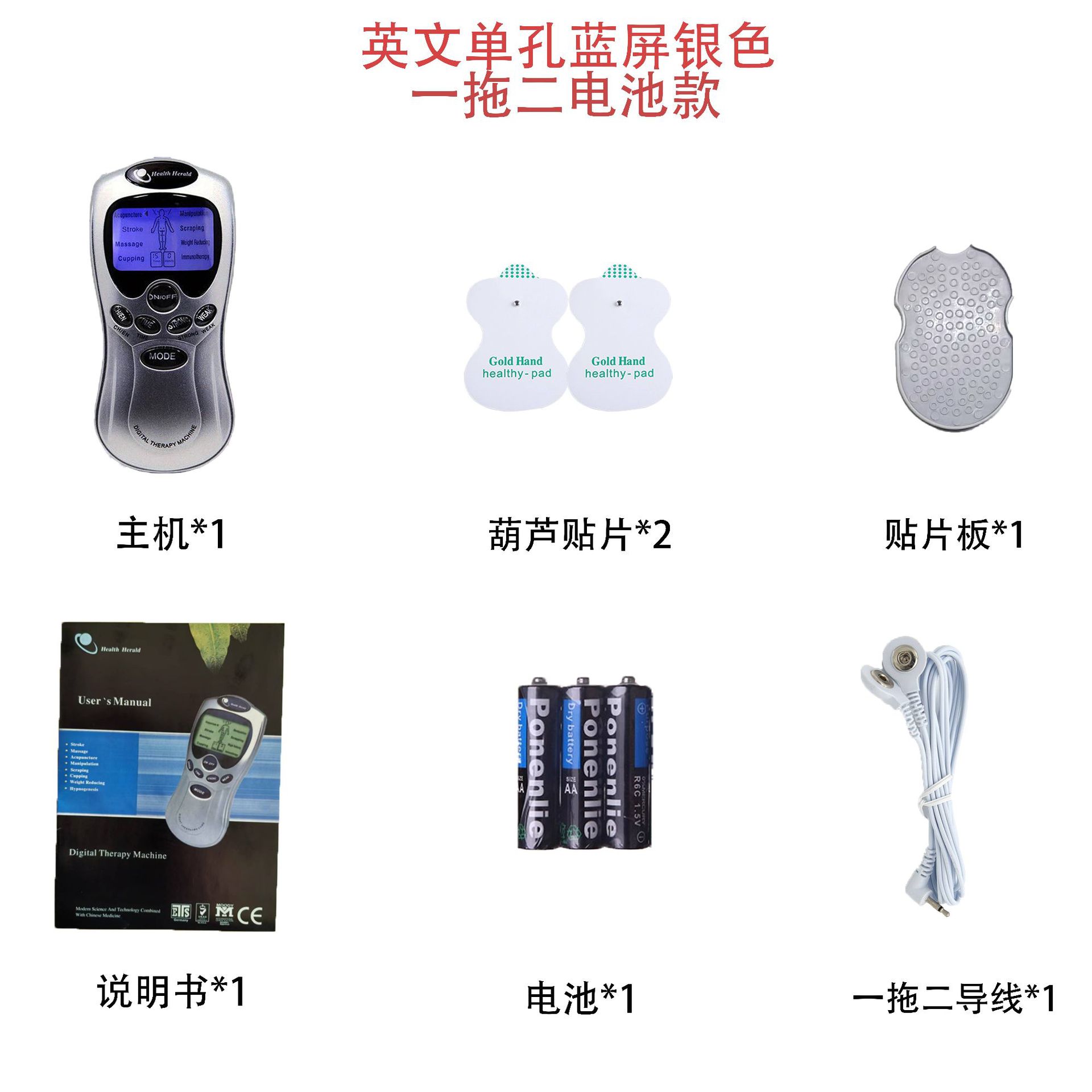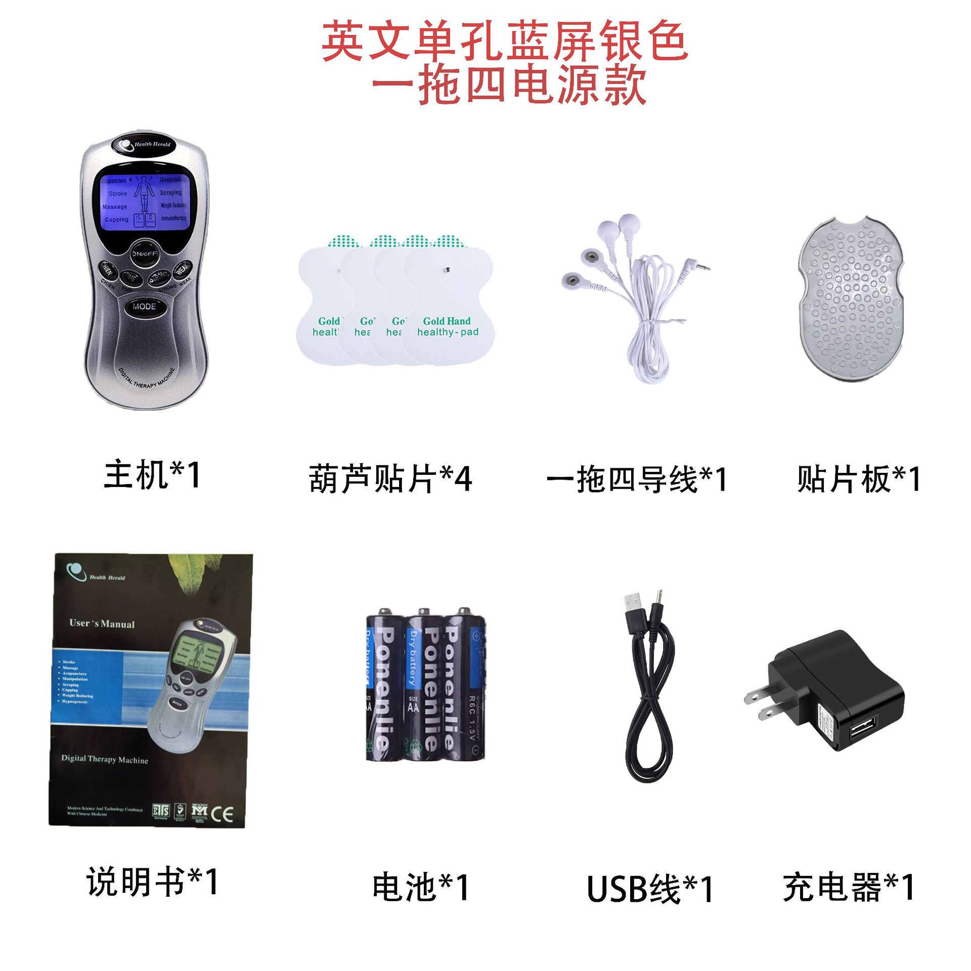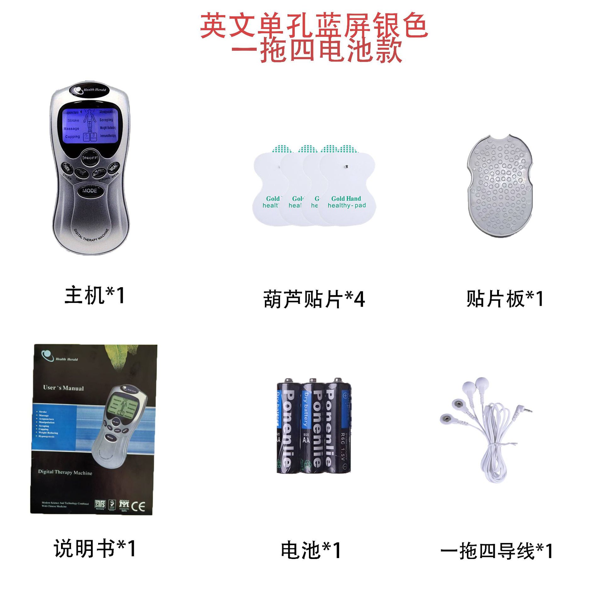 一拖四电池:2条一拖4纽扣线+8片贴片+3节电池+说明书+彩盒+机器+黏贴板