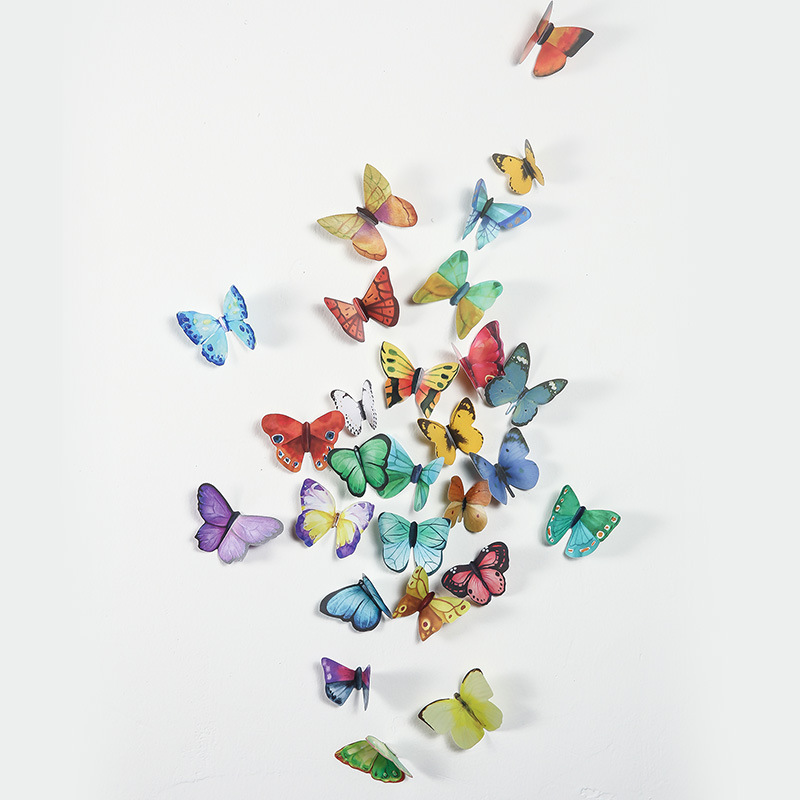 - 仿真蝴蝶墙贴产品附带双面胶,产品可以装饰在客厅,卧室,儿童房间,婚庆现场布置,会场装饰等 ,用途非常广阔。
