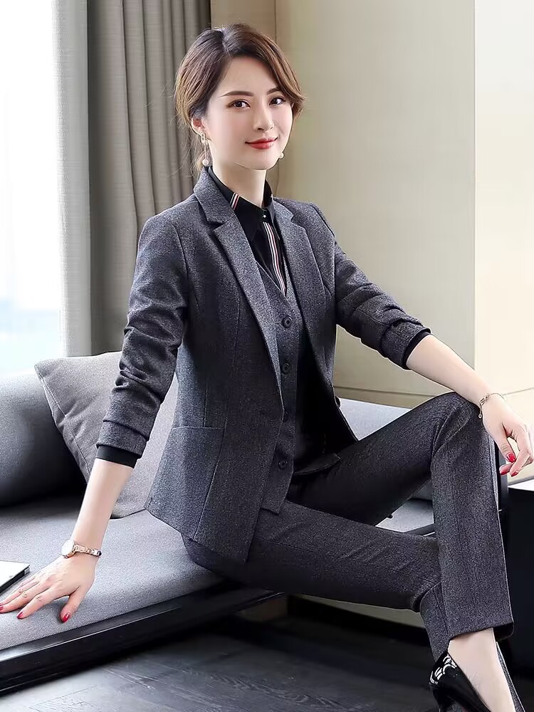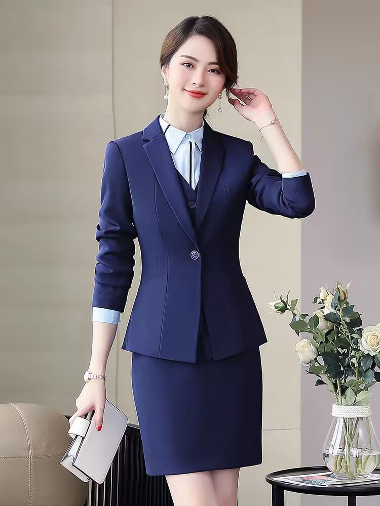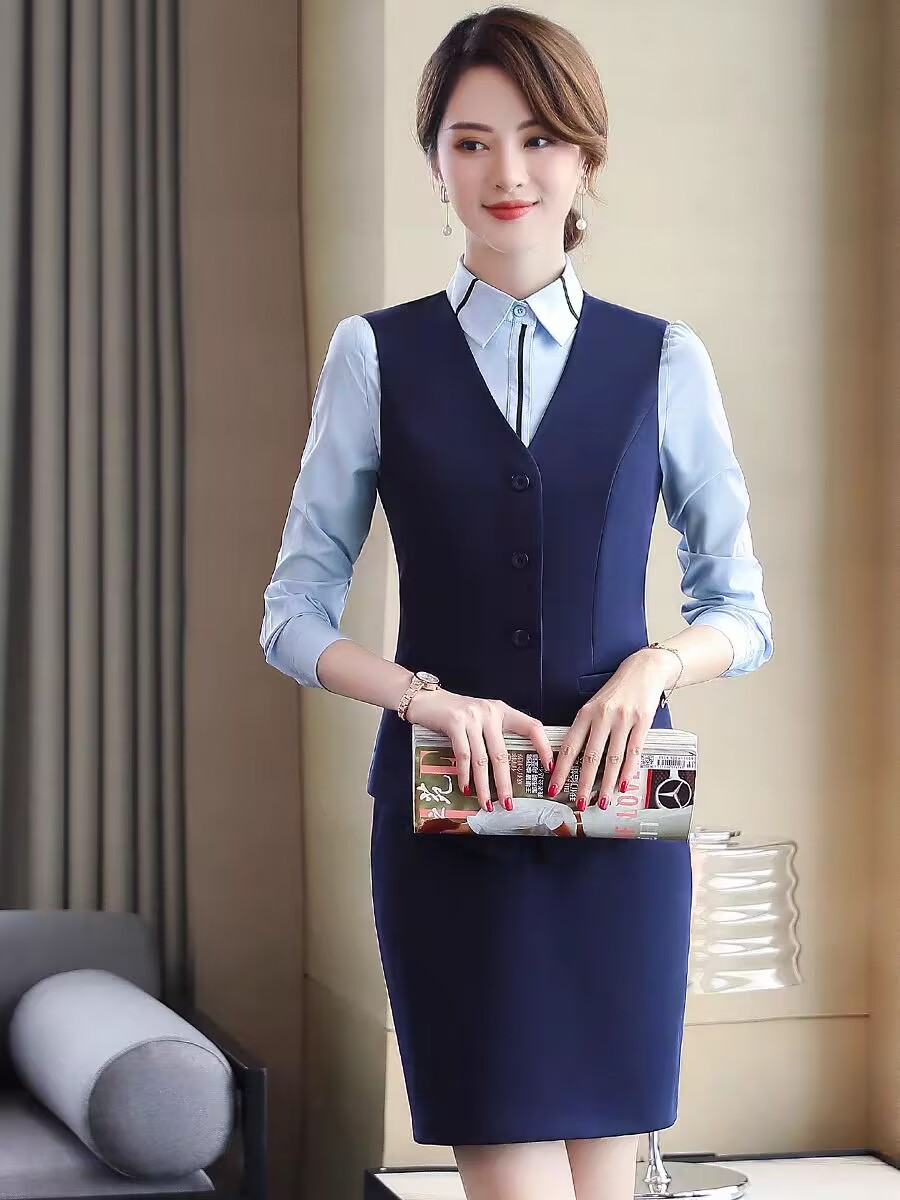 Рабочая одежда для регистрации отеля Осенне-зимняя одежда Профессиональный костюм Женский салон красоты Кассир Платье для интервью с продавцом
