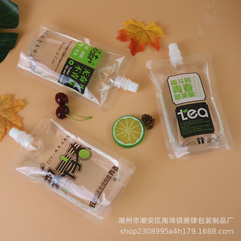 Всасывающая насадка Пакет для напитков Пакетик для соевого молока Пакетик для чая с молоком Китайская медицина Жидкий герметичный одноразовый автономный прозрачный пакет для печати
