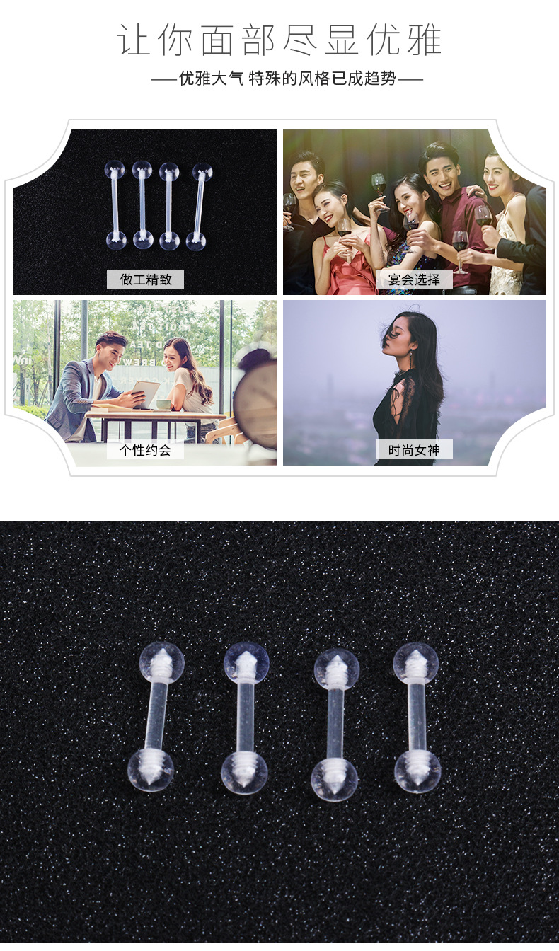 Оптовая продажа УФ мягкая палка язычная гвоздь прозрачная бровь губная гвоздь европейское и американское тело пирсинг пупок носовое кольцо ювелирный набор
