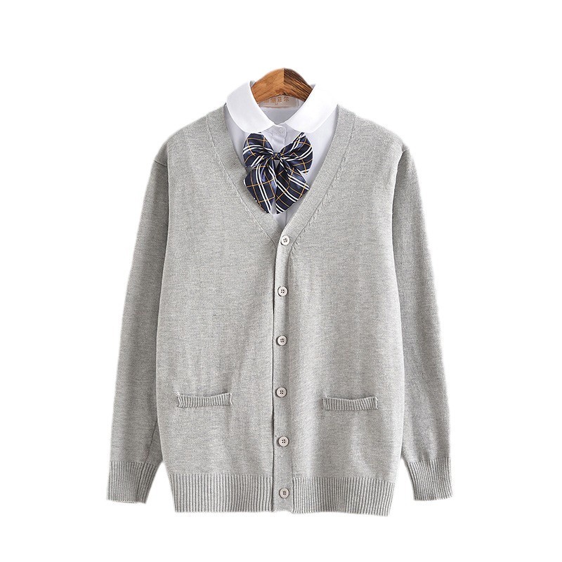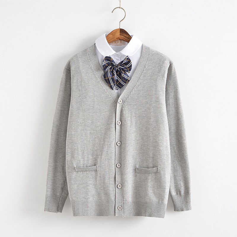 Кардиган в стиле JK, серый, с длинными рукавами, вязаный топ для японских девушек, базовый слой, подходит к матросскому костюму