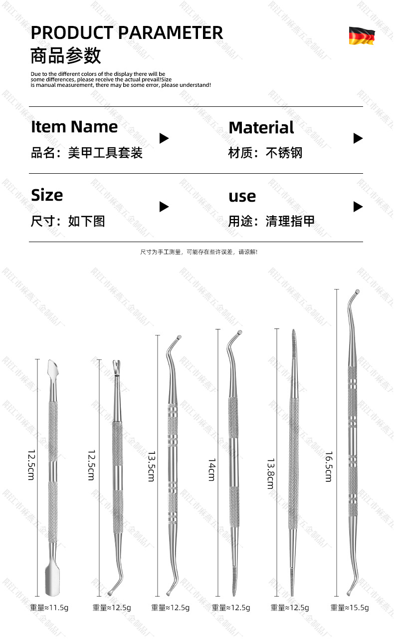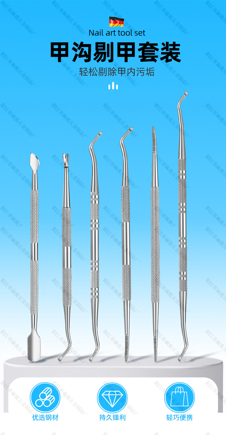 Специальный инструмент для ухода за ногтями, двухсторонняя ложка для ногтей, щипцы «орлиный клюв», стальной штифт для выталкивания кутикулы, набор для маникюра (вилка для кутикулы, пилка для ногтей).
