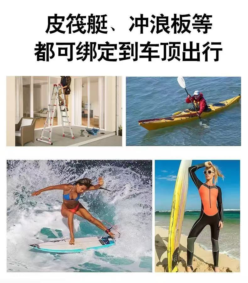 适合范围:适用于通用车型,安装于汽车车顶,适合携带行李,梯子,冲浪板,独木舟等等,建议最长载物不超过车身长度