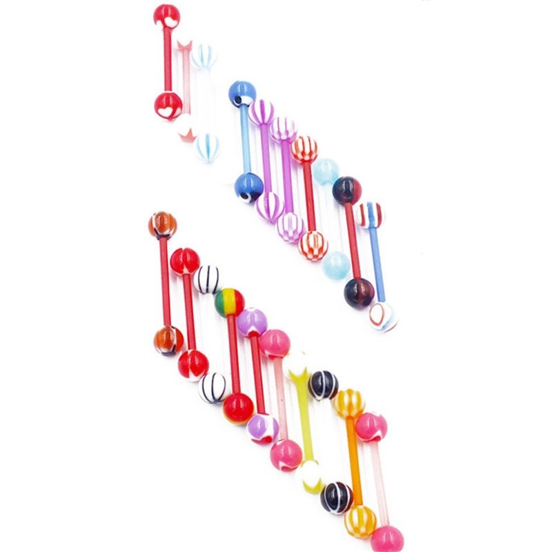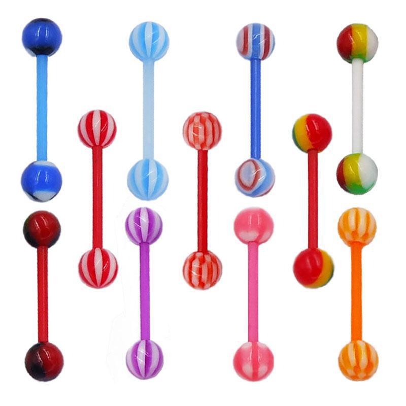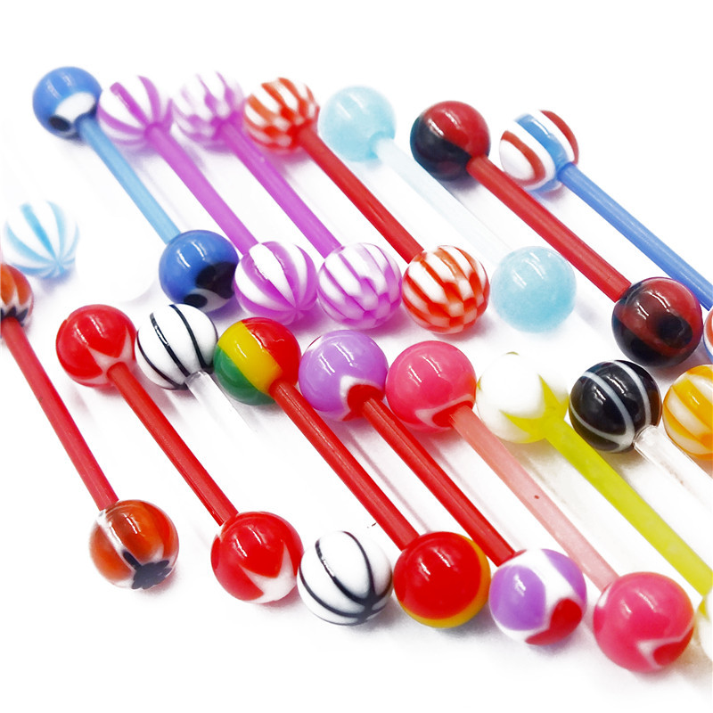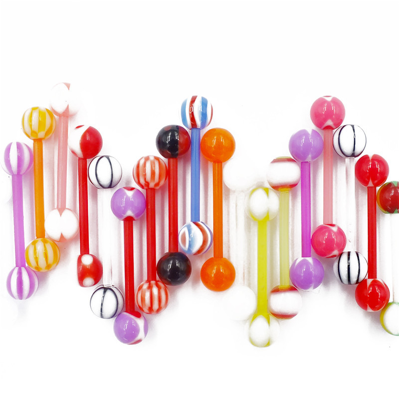 Прямые поставки от производителя на AliExpress: акриловые кольца для языка смешанных цветов с красочными узорами, оптовая продажа модных украшений для пирсинга языка.