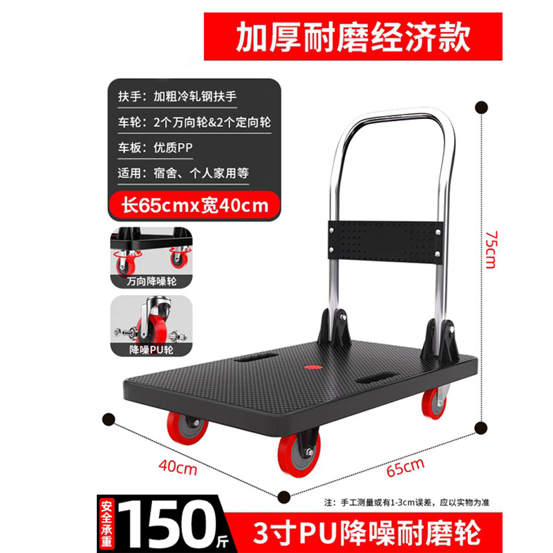 Тележка для перемещения грузов из утолщенного бесшумного пластика, плоская тележка для экспресс-логистики, транспортная тележка, бытовая нейлоновая маленькая тележка