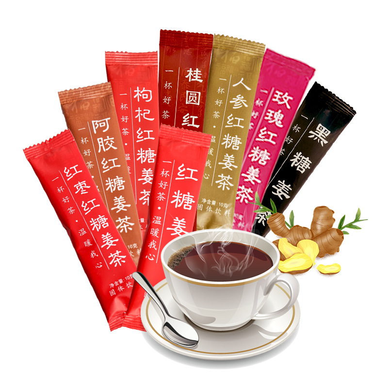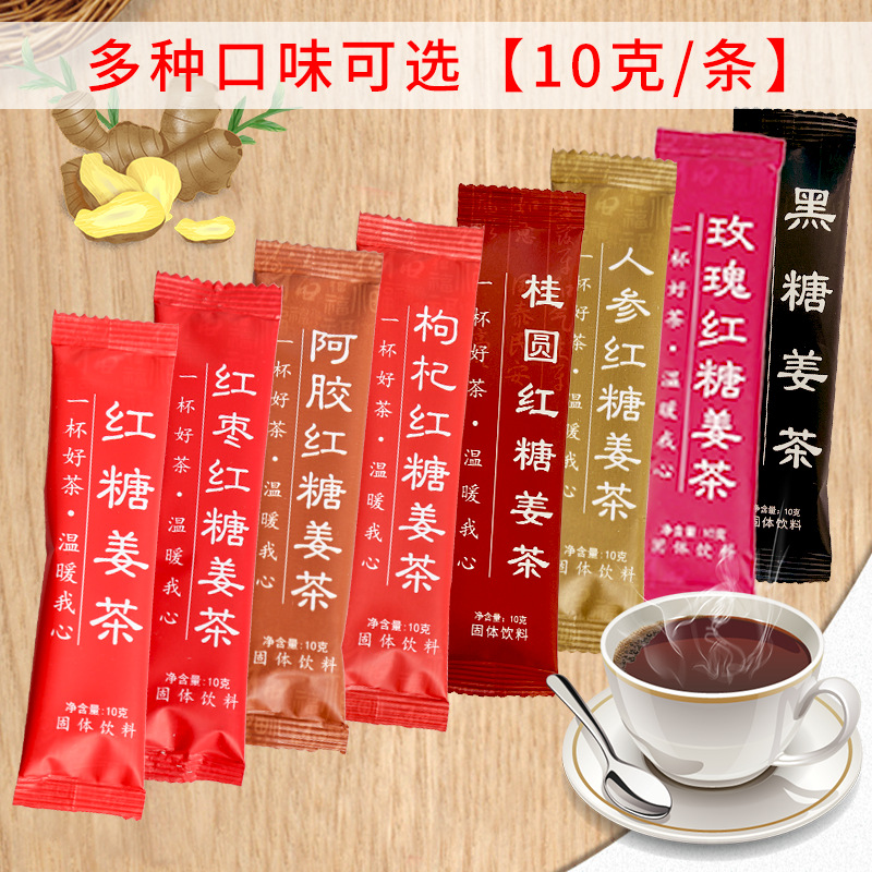 Коричневый сахар Имбирный чай Имбирный суп 10 г Массовое издание Тетя Чай Ejiao Красный мармелад Лайчи Роза Различные вкусы Пакетное поколение