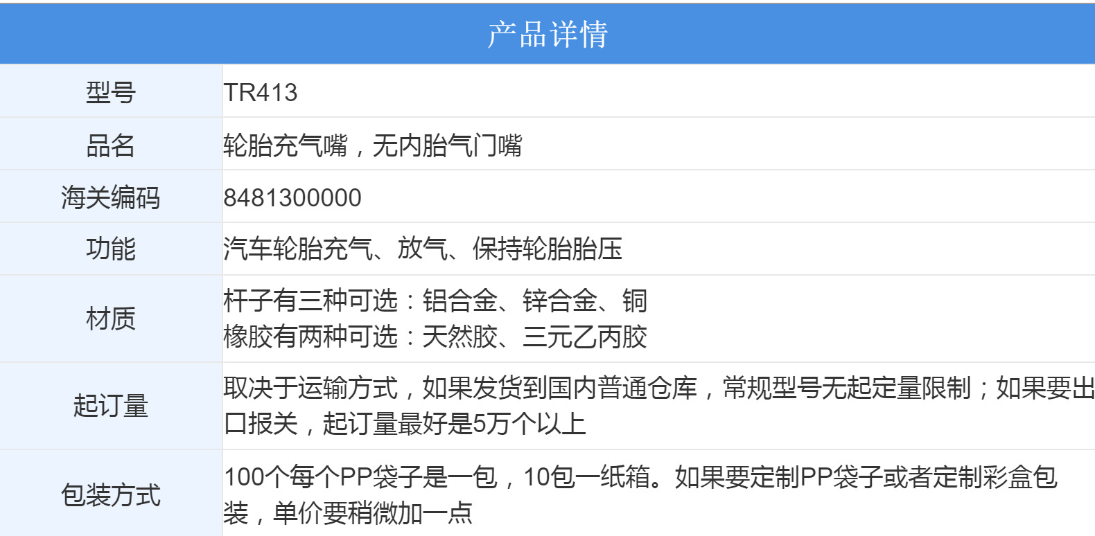 Шины надувные насадки производитель алюминиевого сплава натуральный клей материал TR413 седан автомобиль американский клапан