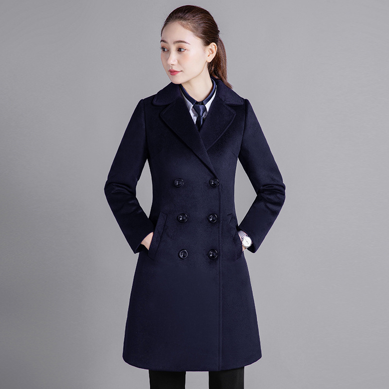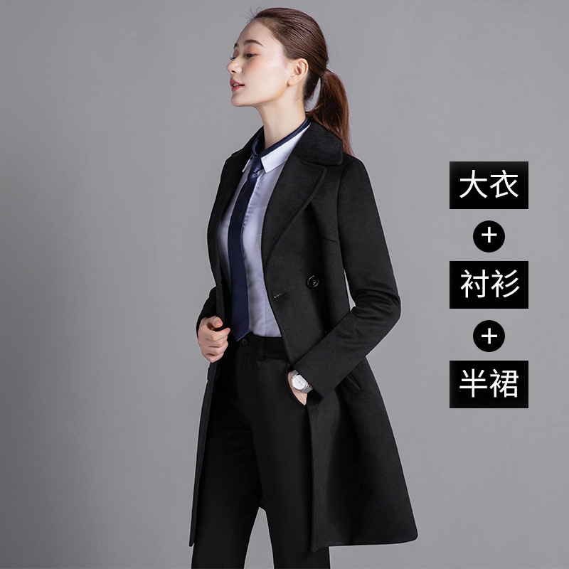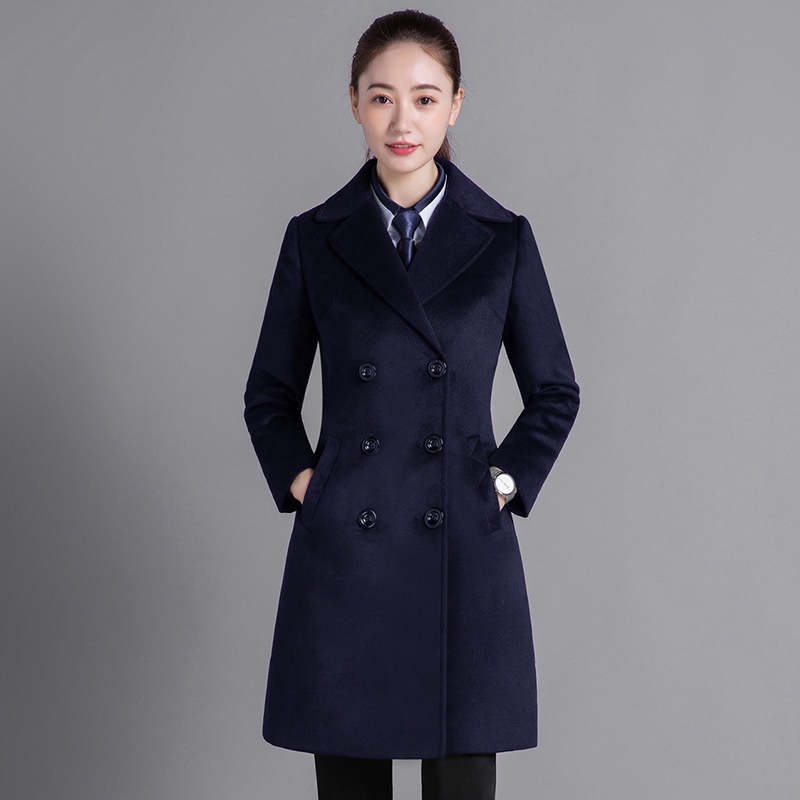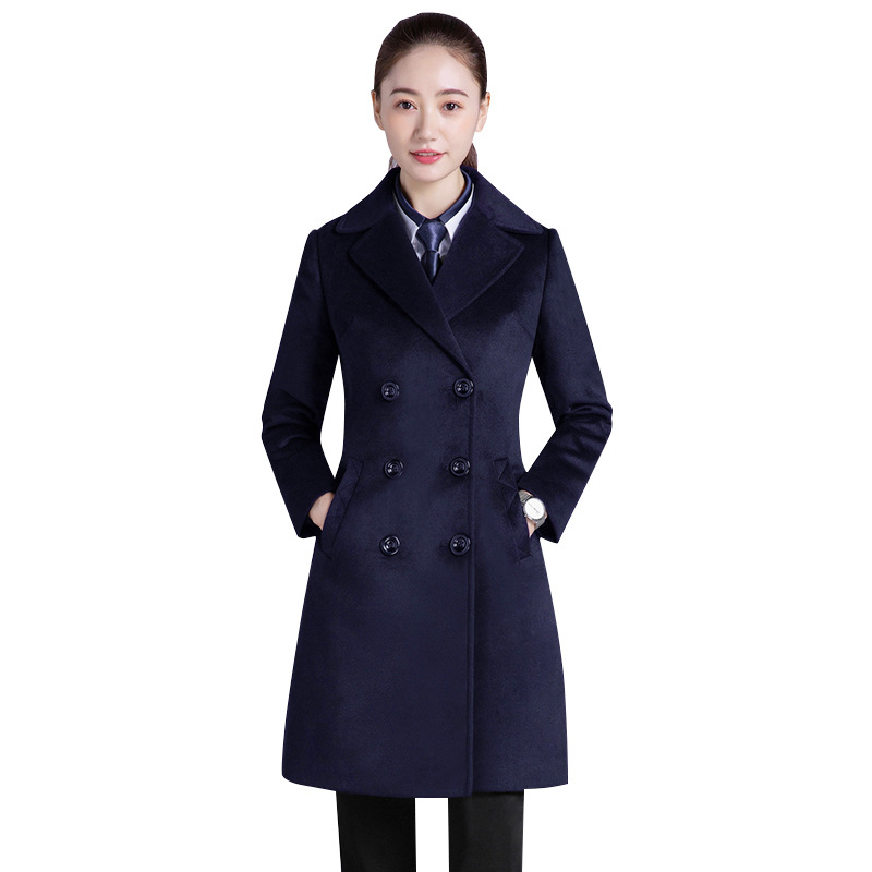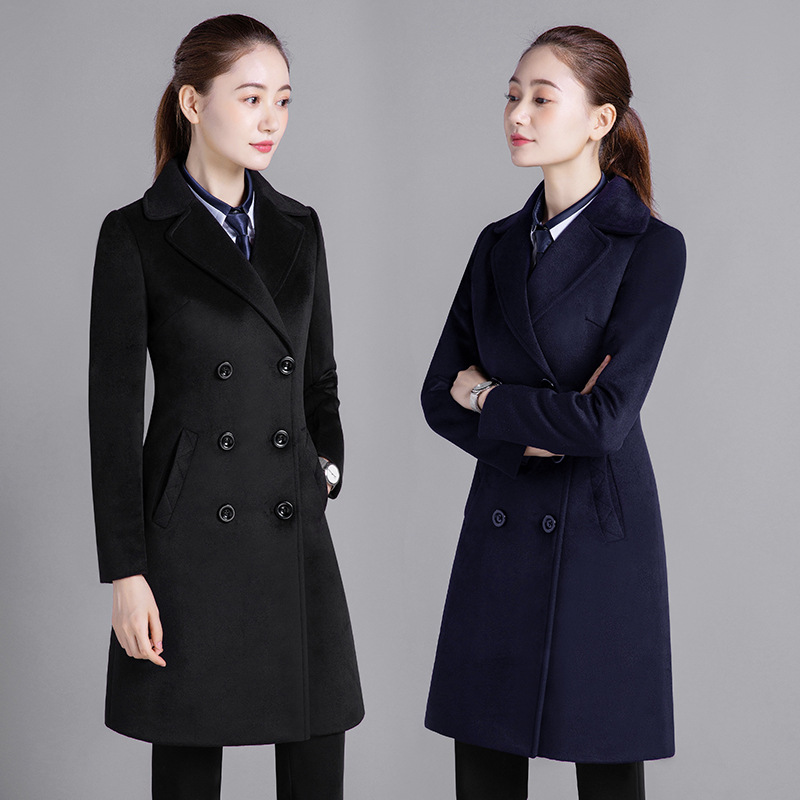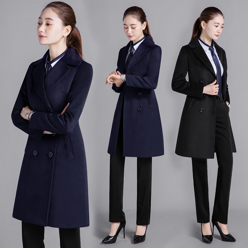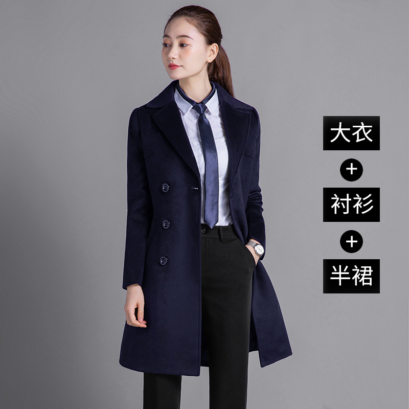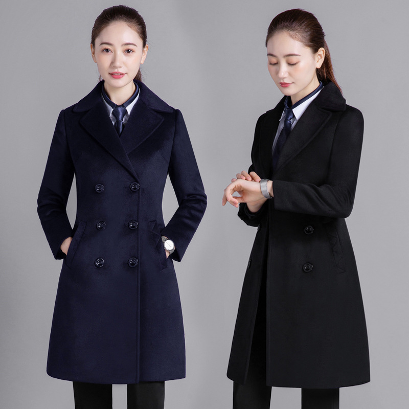 Профессиональная женская одежда Шерстяное пальто средней длины Рабочая одежда Шерстяное пальто Женский персонал Профессиональное шерстяное большое платье с длинными рукавами