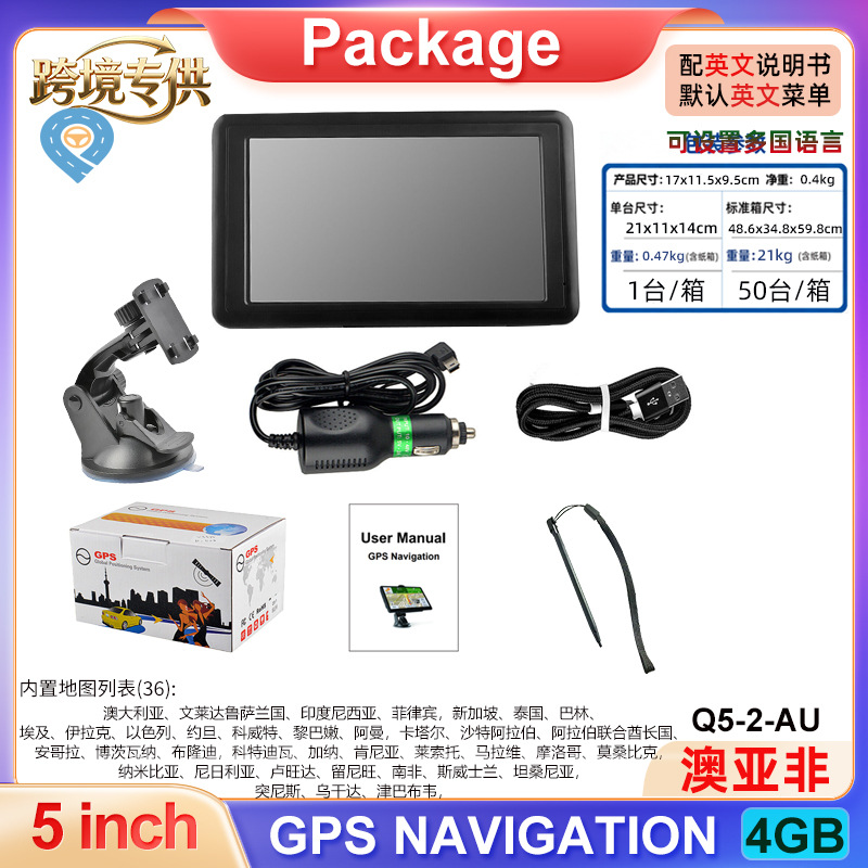 5寸高清GPS导航仪 内置阿拉伯语 出口中东地图 东南亚,澳洲,南美,非洲