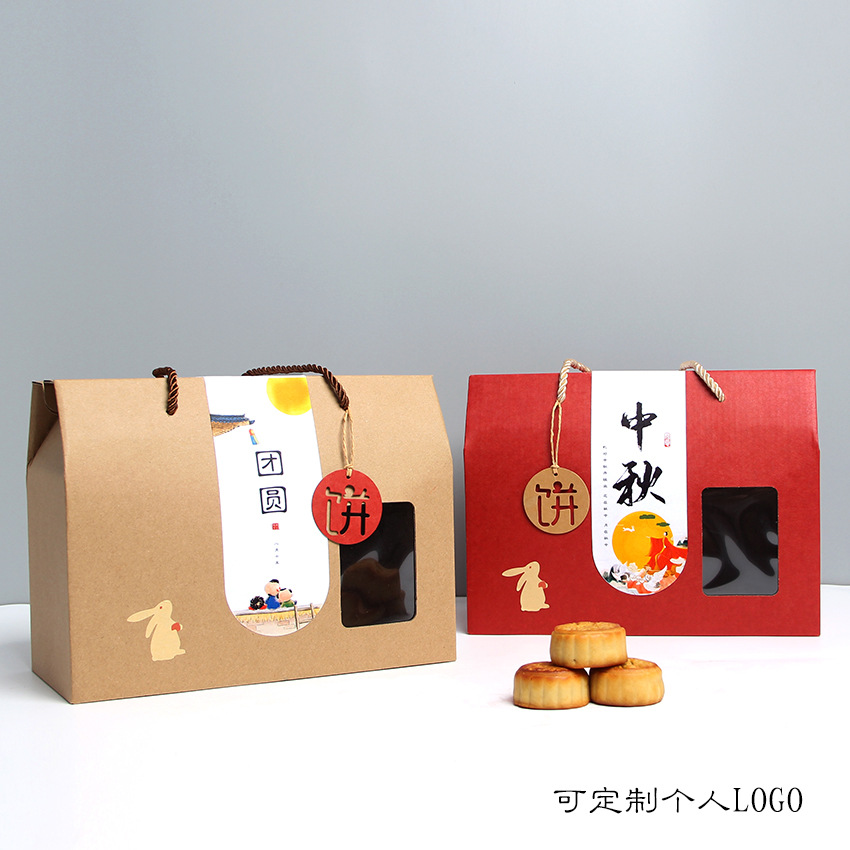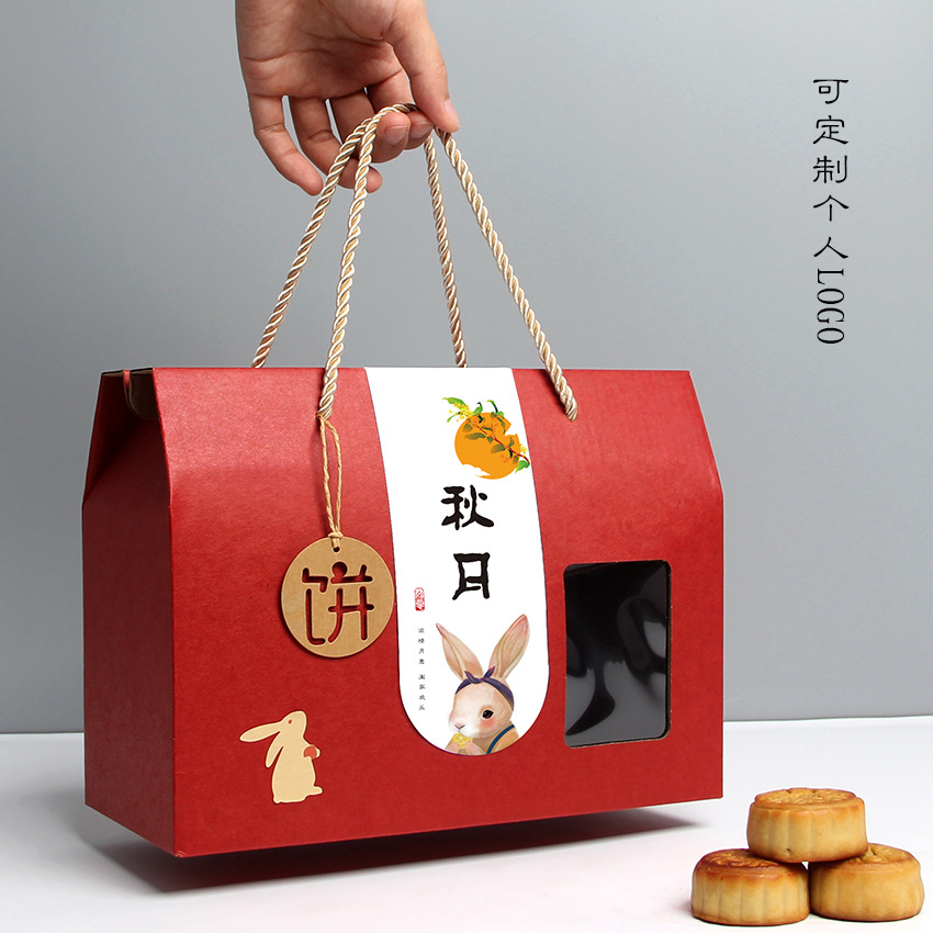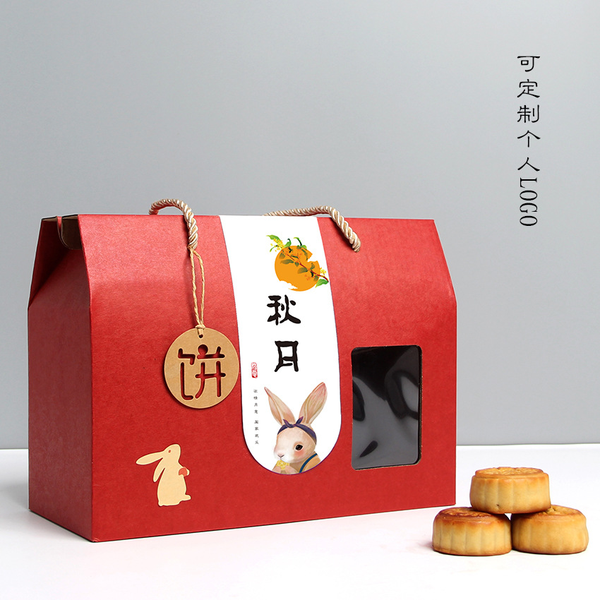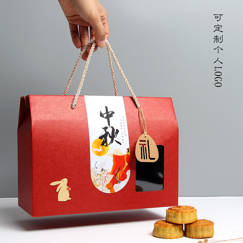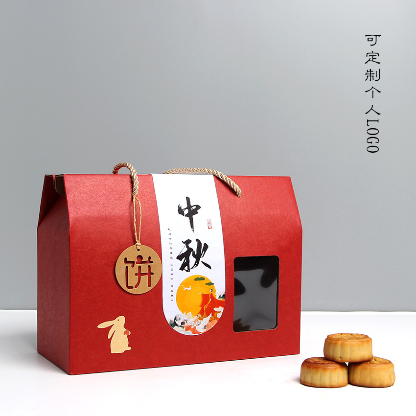 Настраиваемый логотип из воловьей кожи, красная упаковочная коробка для лунного пирога в середине осени, местная фирменная подарочная коробка, универсальный чемодан с окном для фруктов и приготовленной еды