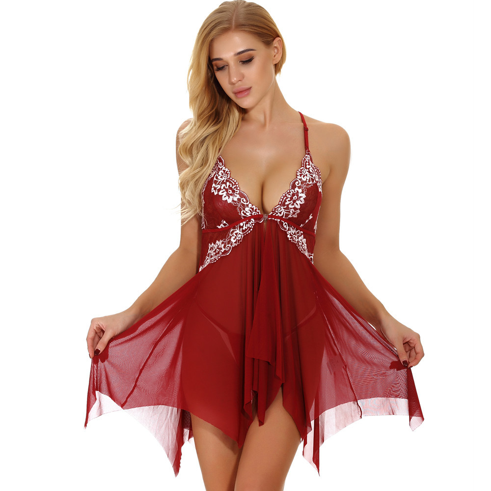 Lace Babydoll Sexy Chemise V Neck Mesh Sleepwear