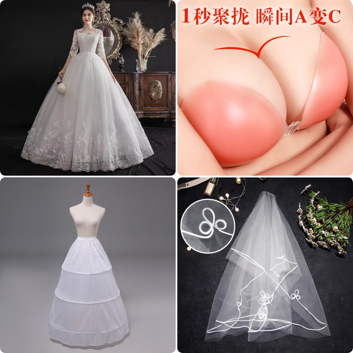 белый; Свадебное платье + (сутушка и вуаль); Свадебное платье + (газовая юбка + кружевная вуаль); Свадебное платье + комплект аксессуаров из пяти предметов + (трусики и фата); Свадебное платье + пуш-ап бюстгальтер + (трусики и фата)