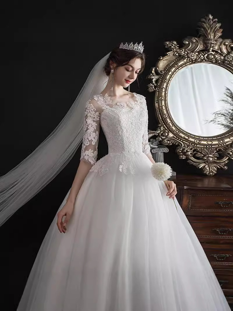 Основное свадебное платье 2023, новинка весны на одно плечо, мечтательное тонкое кружевное платье со средними рукавами для невесты длиной до пола, свадебное платье большого размера в лесном стиле