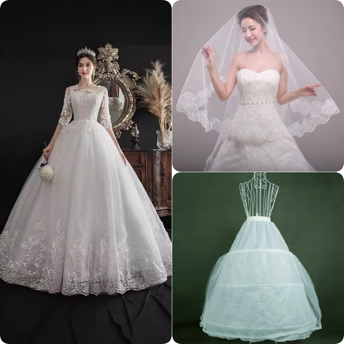 белый; Свадебное платье + (сутушка и вуаль); Свадебное платье + (газовая юбка + кружевная вуаль)