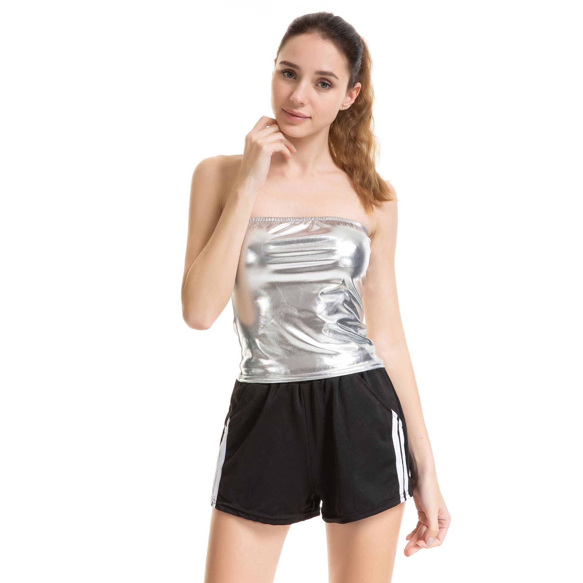 Популярная в Европе и Америке женская одежда из лакированной кожи с горячим тиснением, сексуальная тонкая одежда для выступлений, однотонная женская одежда, униформа, прямые продажи с фабрики