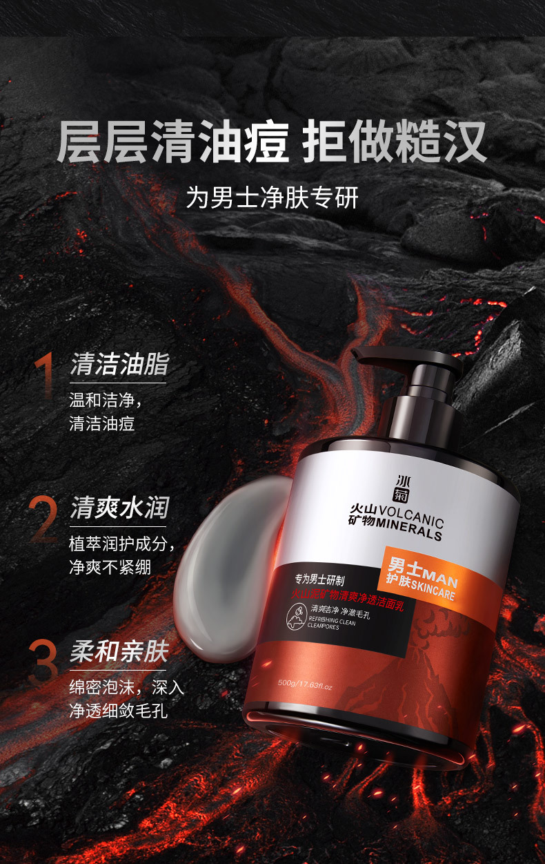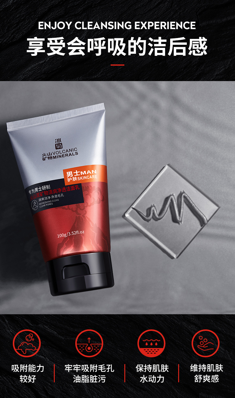 Ice Chrysanthemum Мужское очищающее средство с вулканическими минералы Мужское Глубокое Очищающее средство для лица с водной масляной пеной оптом